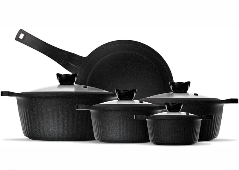 Aboud Die-Cast Granite 9-Piece Cooking Set (Pots 18/20/24/28 + Frying Pan 28) Black