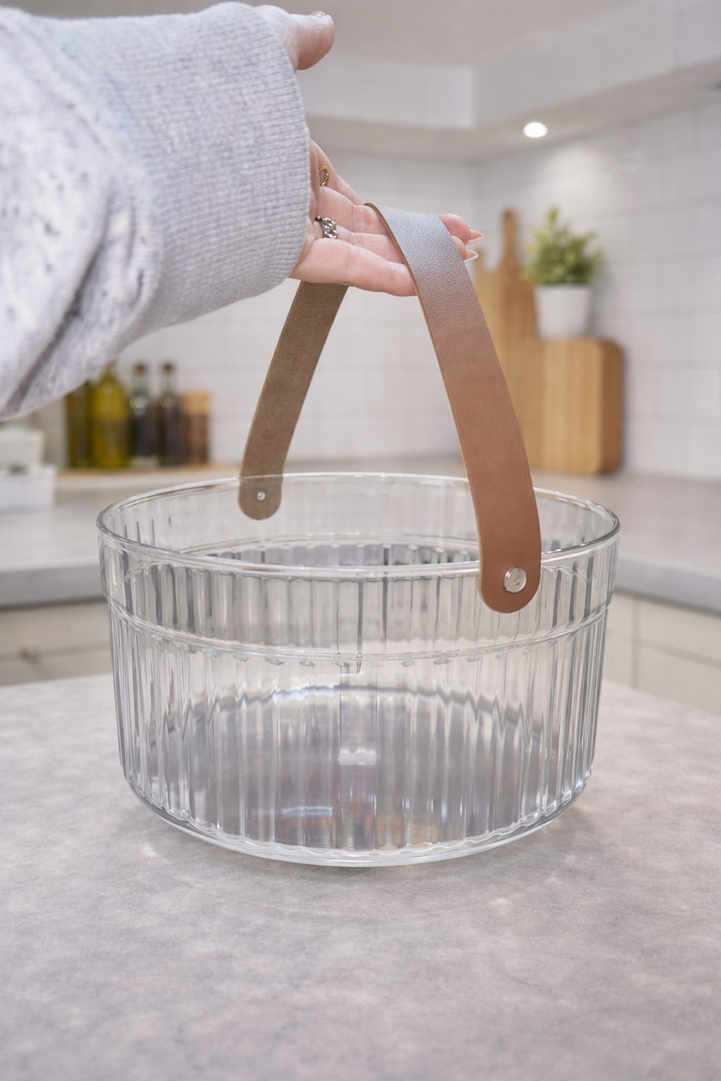 Acrylic Basket with Leather Handle - ch -a1-767