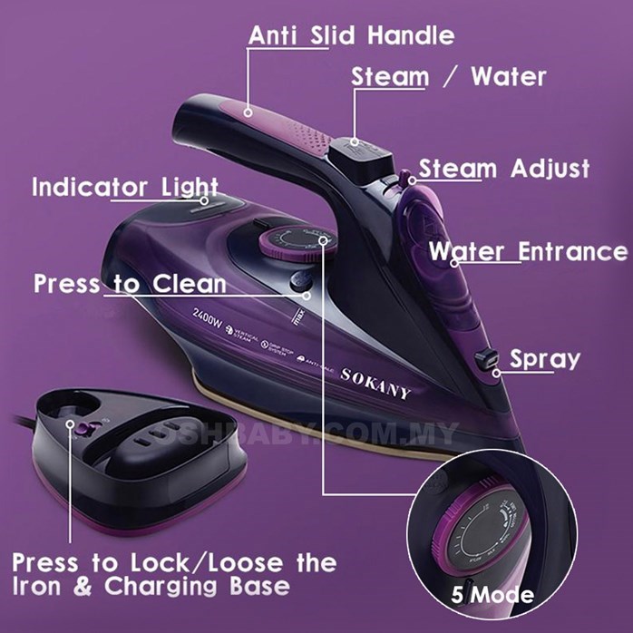 AJ2085 - Sukani Cordless Steam Iron, 370ml, 2400W, Green