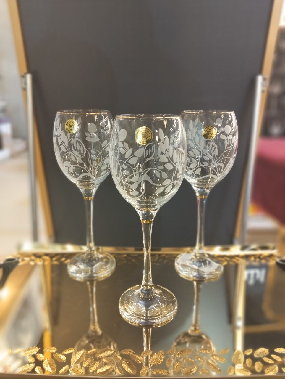 Al Saqr Glass Set – 6 pieces, with a relatively short design, wide at the top, and accented with a thin golden ring – 9059#3