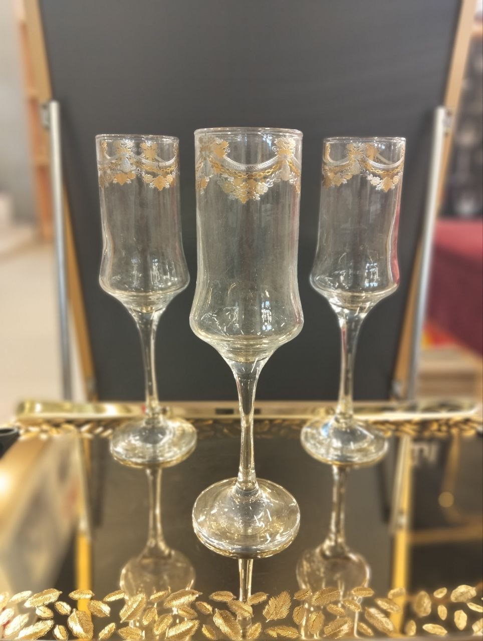 Al-Saqr Glass Set, 6Pcs, Tall with Gold Floral Design-778-6