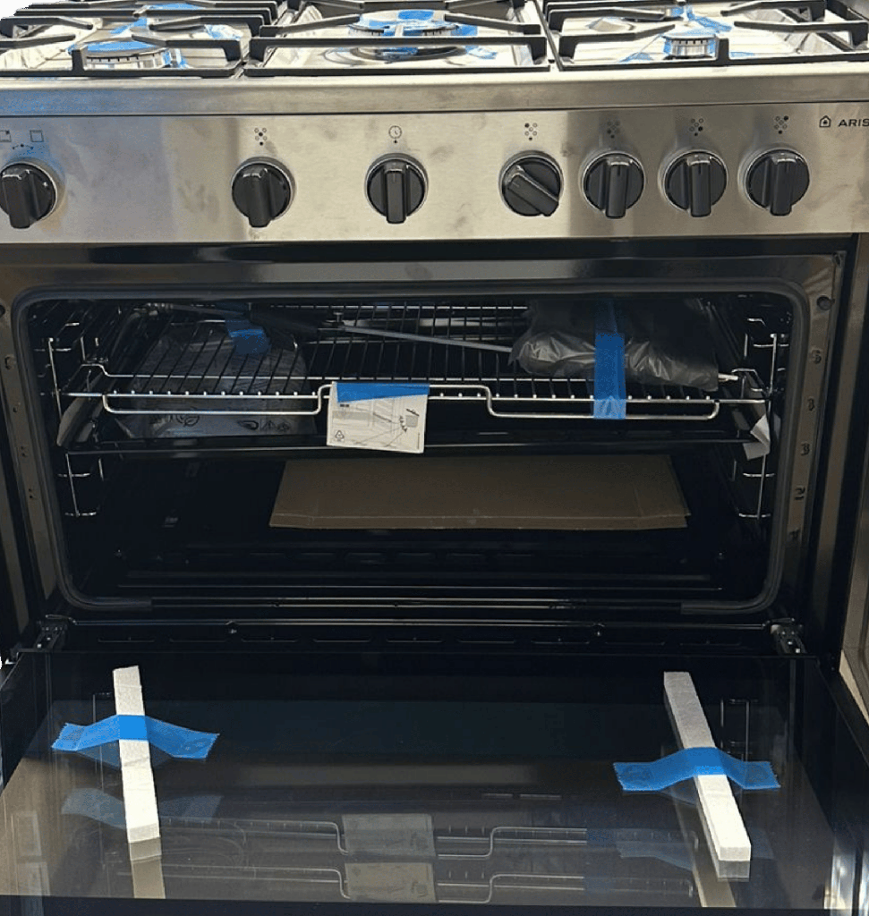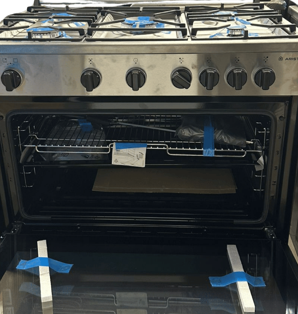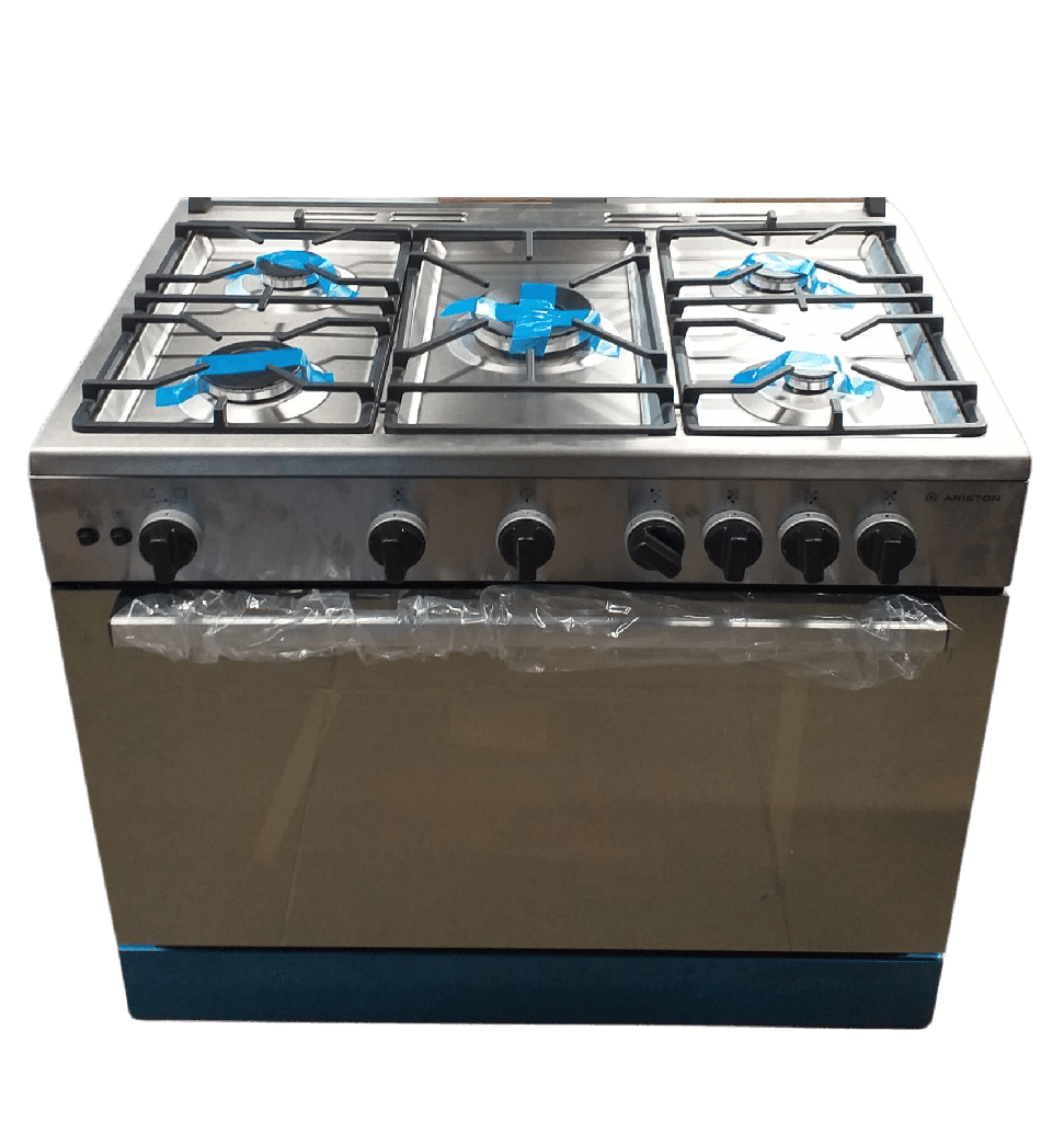 Ariston Gas Cooker, 90 cm 5 Burners, Cast Iron Pan Supports, Fully Safe, Stainless Steel - ARR9GGF23125XNA