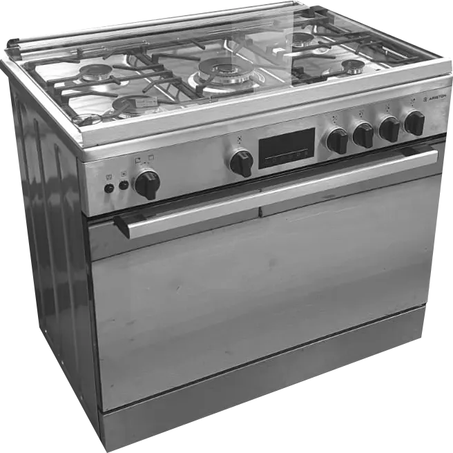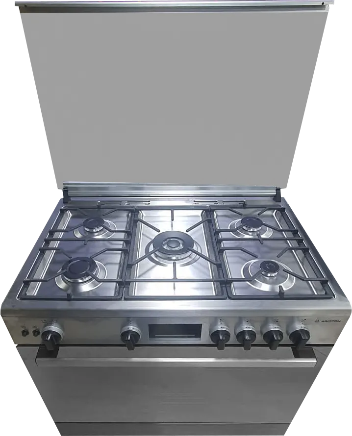 Ariston Gas Cooker 90 cm, 5 Burners, Digital Display, Cast Iron , Full Safty, Stainless Steel - ARR9GGF33229XNA