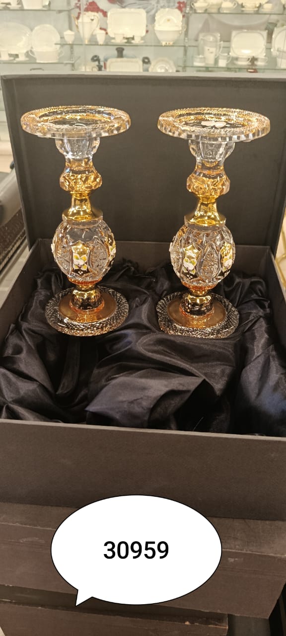 Arizona Candle Holder Set Embossed Flower – Hand-Embellished, 2 Pieces