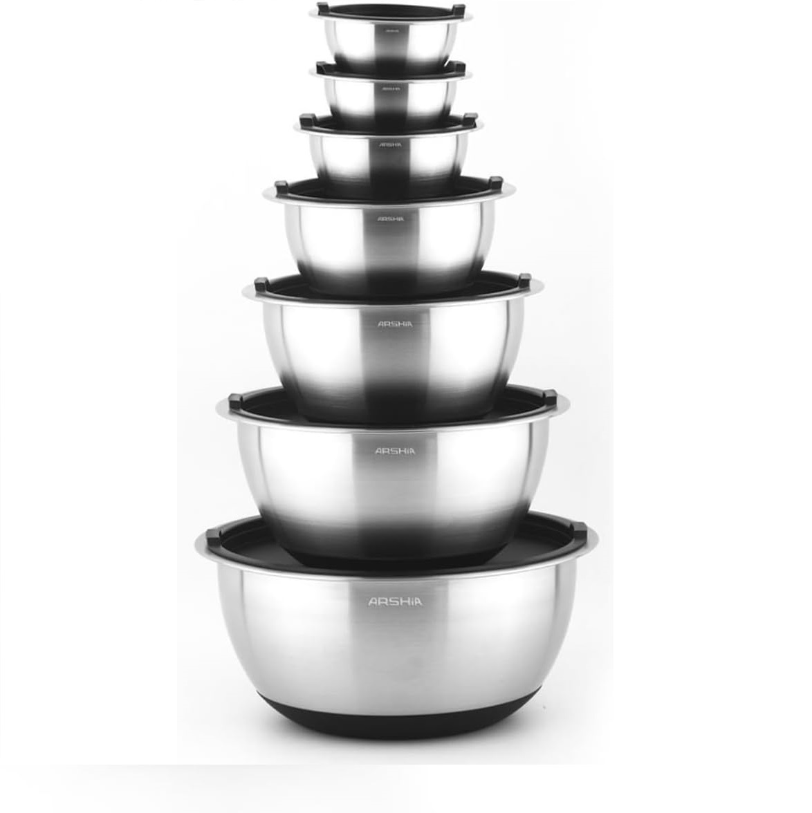 ARSHIA Stainless Steel Mixing and Storage Bowl Set - Made in Germany - 14 Pieces