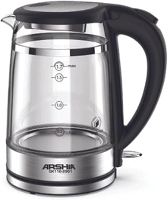 ARSHIA ELECTRIC KETTLE 1.7 LITERS DOUBLE GLASS 2200 WATTS SILVER ARSHIA2961