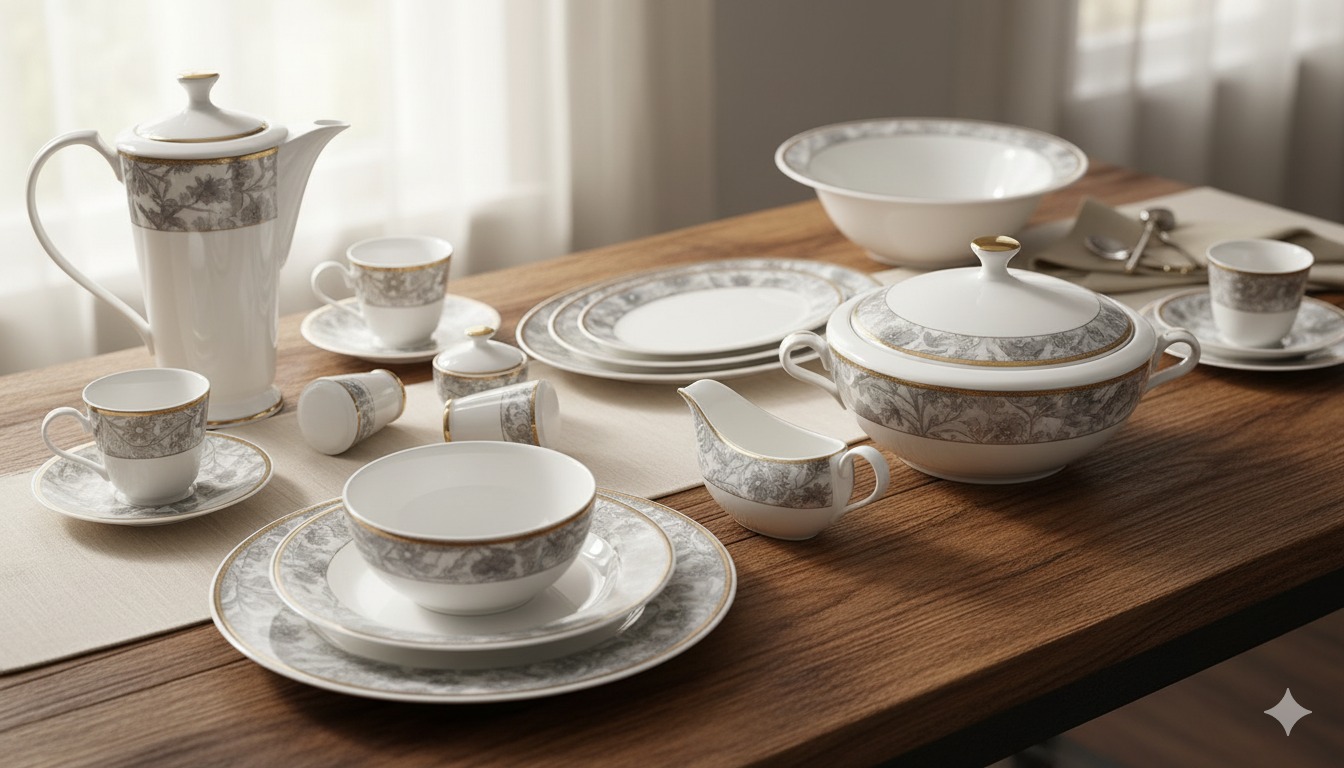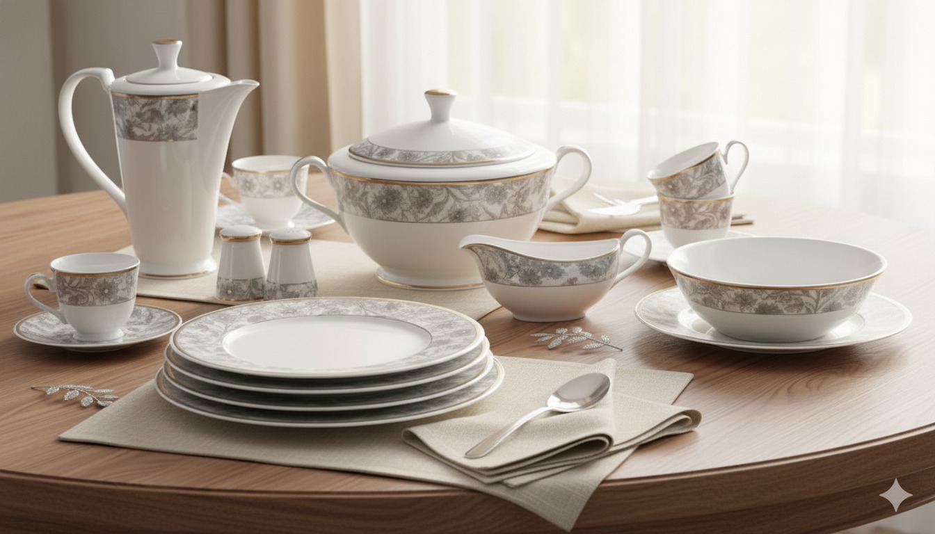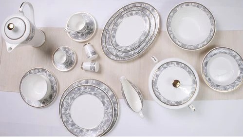 Bangladesh Dining Set 113 Pieces with Fine Engraving in Silver and Gold Colors, Retro Design, Code I150901B
