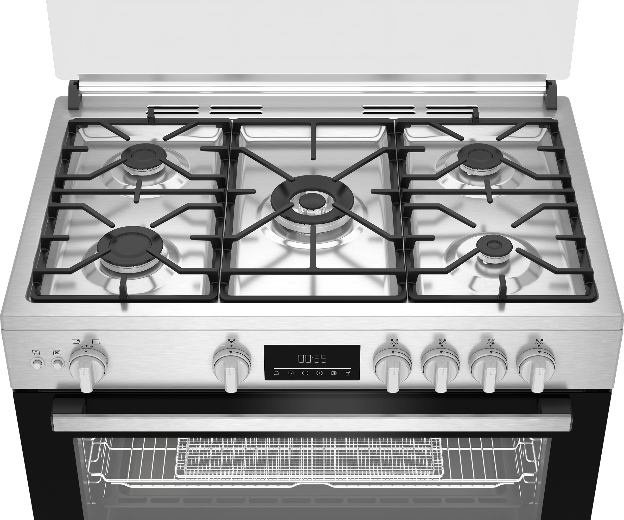 Beko Gas Cooker 5 Burners 90 cm Digital Display Stainless Steel BGGR 11225 GXA