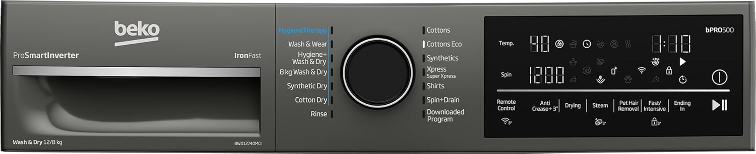 Beko Automatic Washing Machine 12KG with Dryer 8 kg, Gray BWD12840MCI
