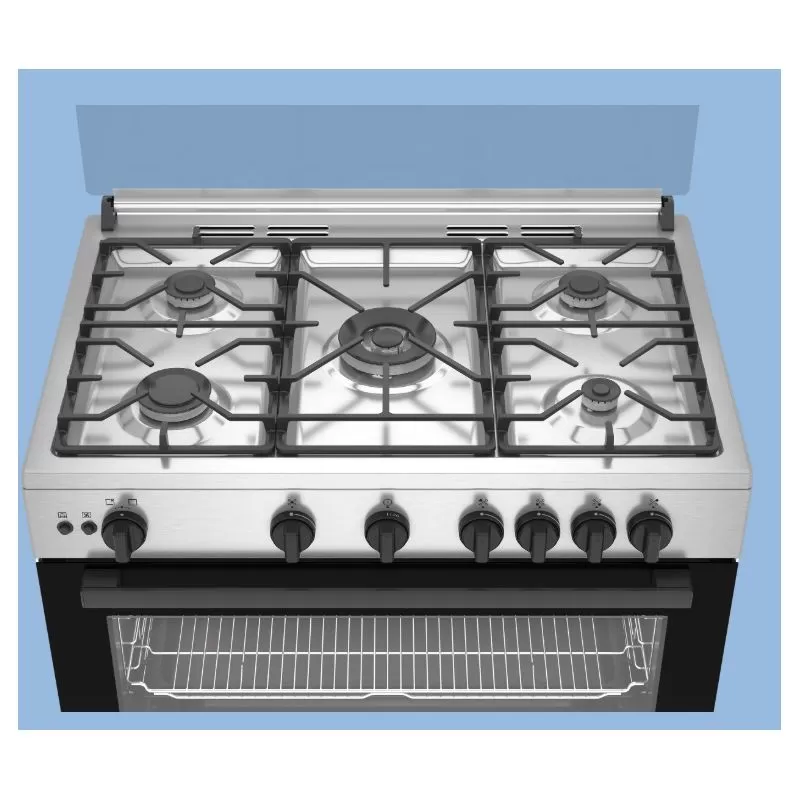 BGGR 11215 GX2 Beko 5-burner gas cooker, full safety features - stainless steel - 2 knobs - 90 cm - 2 cooling and cooking fans - touch screen - cast iron grates