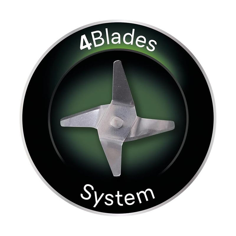 • Quad-shaped stainless steel blade, two cutting blades and two assembly blades for perfect results