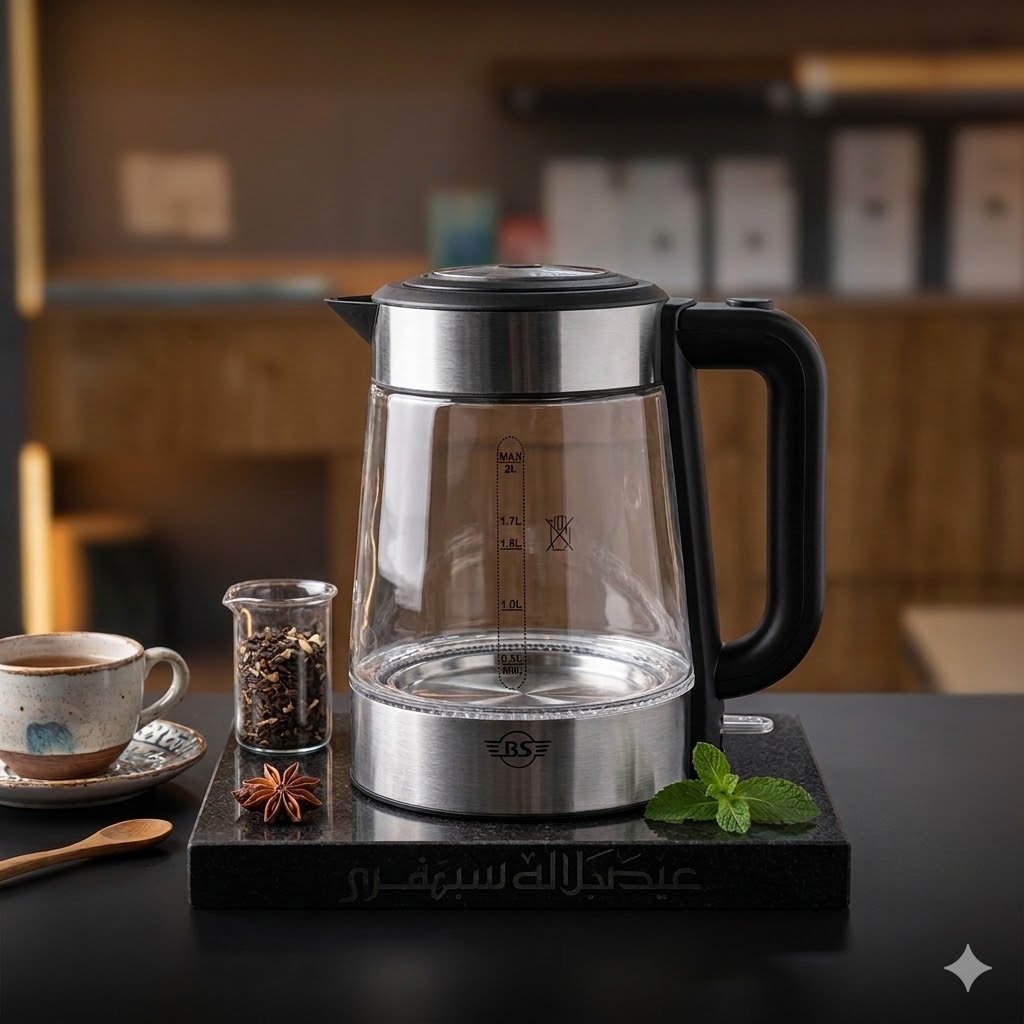 Black Stone Glass Kettle, 2 Liters, Black