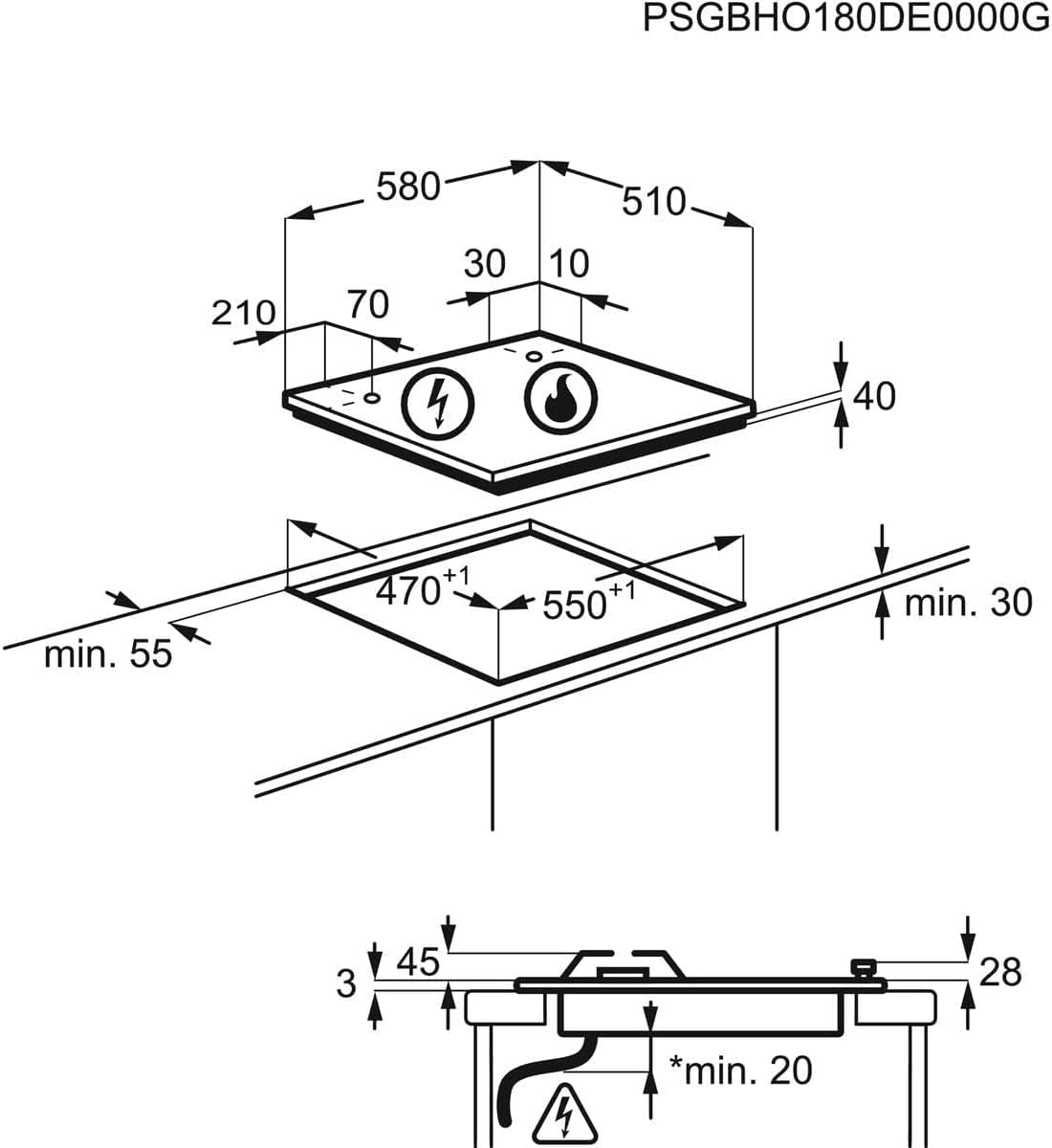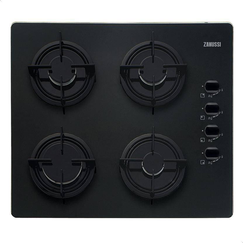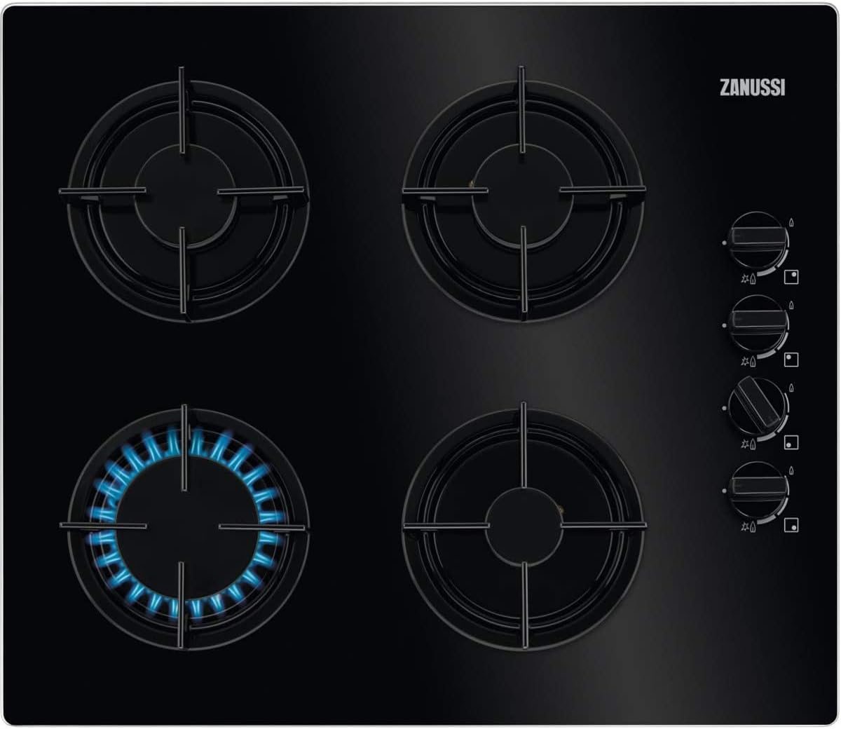 ZANUSSI Hob Built-in Gas, 60 cm 4 Burners Full Safety Glass Surface , Black - ZGO62414BA-1