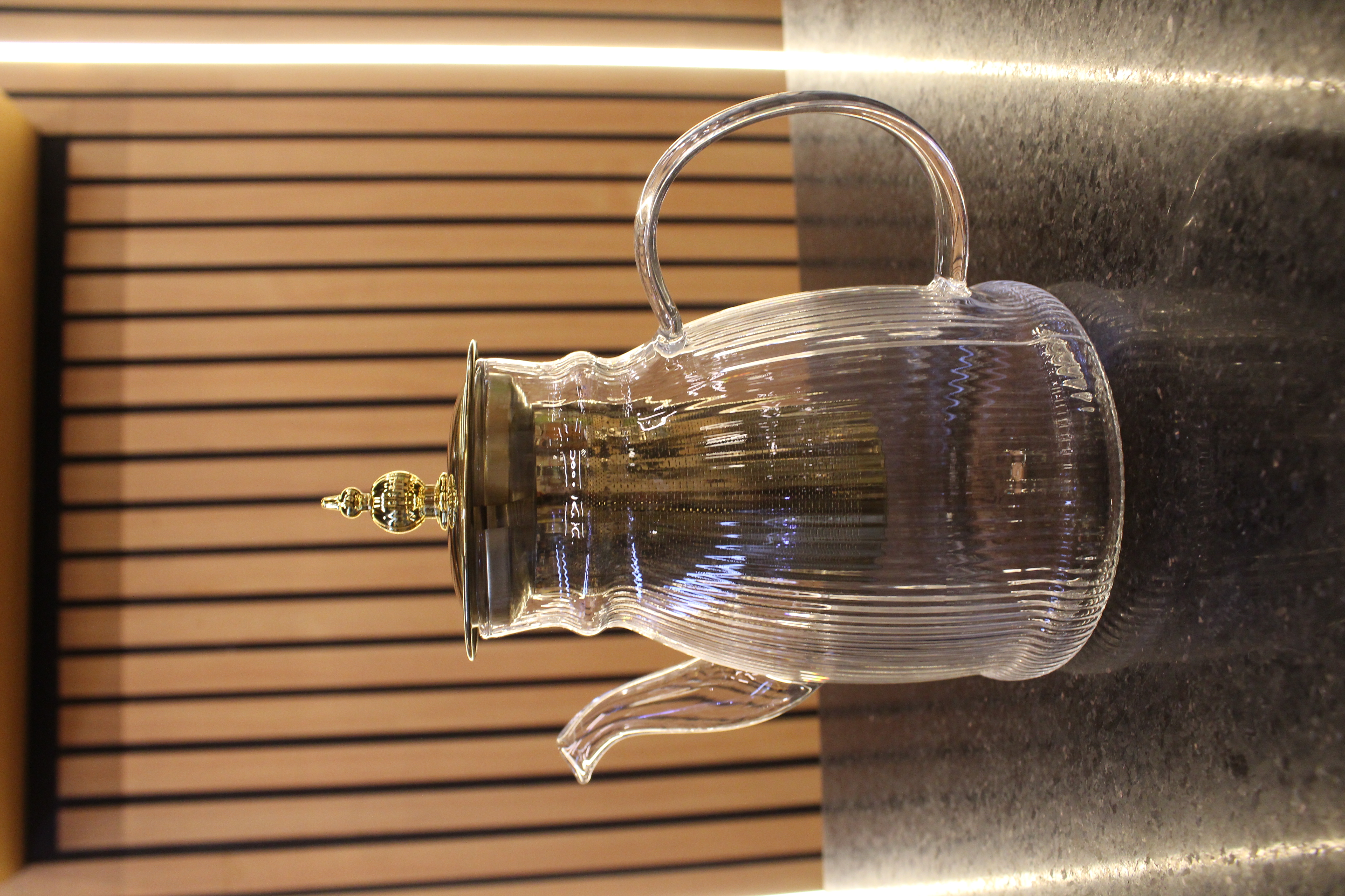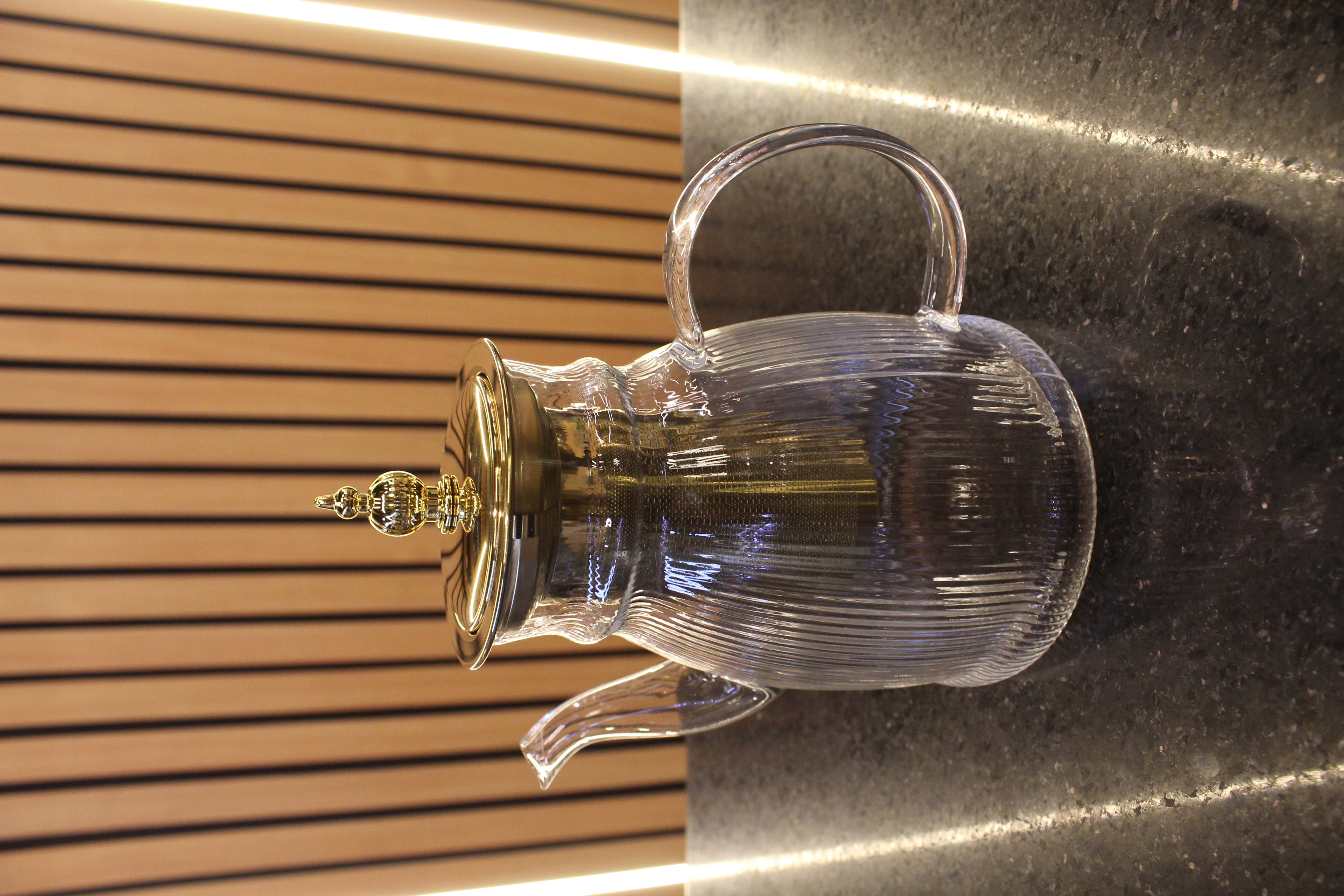 Pyrex glass teapot, white ribbed with stainless steel strainer TML - 377