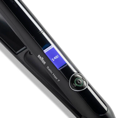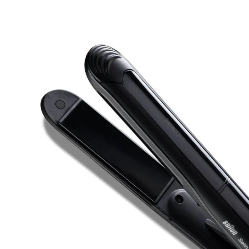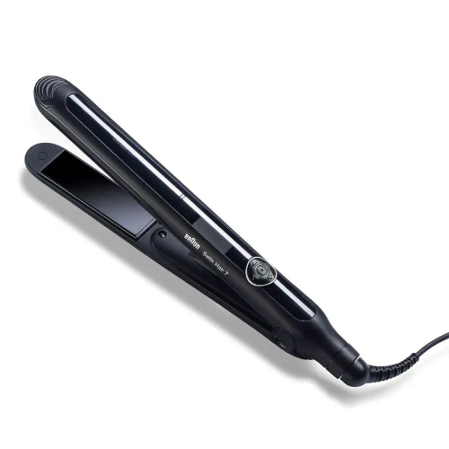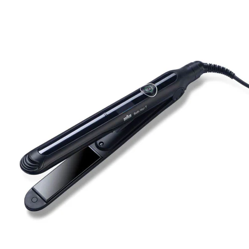 Braun Hair Straightener featuring automatic temperature control via smart sensors, made with nano-ceramic plates to help protect hair from damage and split ends.