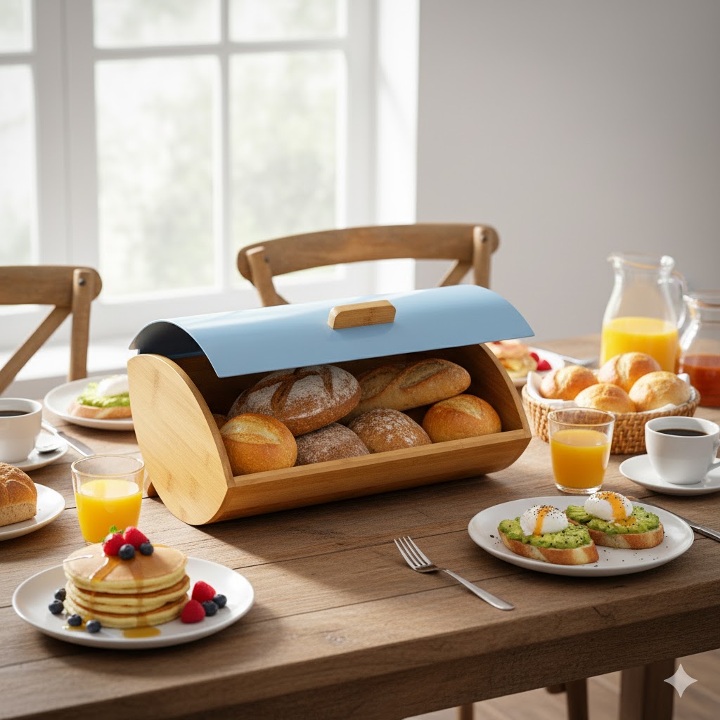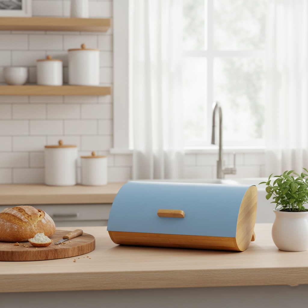 Tessie & Jessie Bread Keeper Box-Shaped, Oval Wooden Design in Light Blue Color Code: SK-9345BLUE