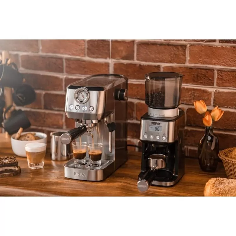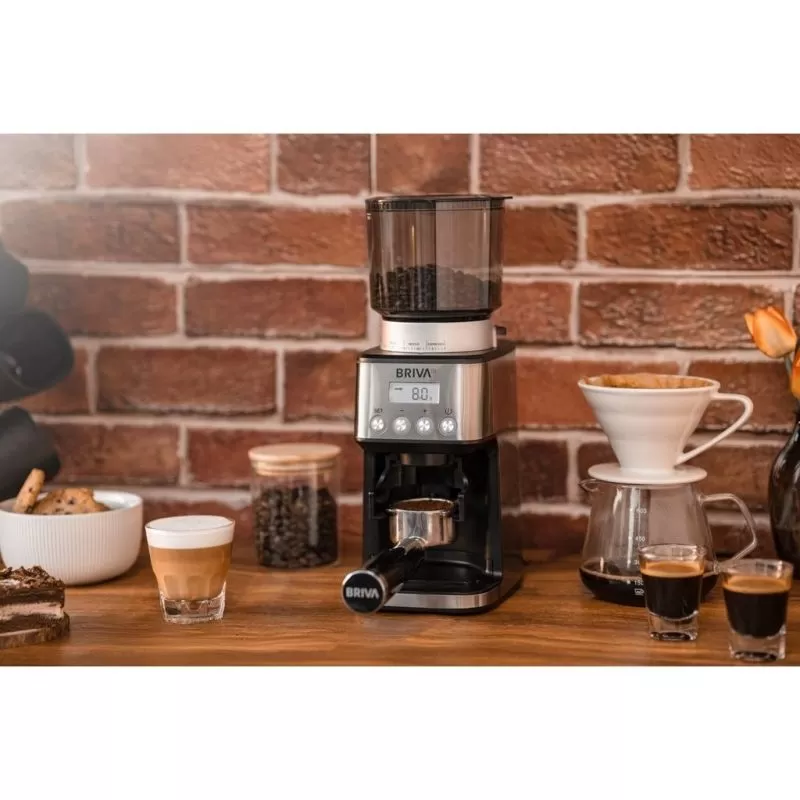Professional stainless steel conical grinder grinds gently at 600 rpm – this preserves the essential oils in the coffee