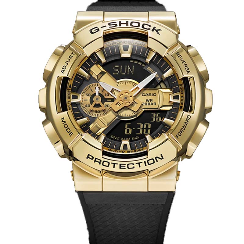Analog: 2 hands (hour, minute (hand moves every 20 seconds)), 1 dial (stopwatch indicator)