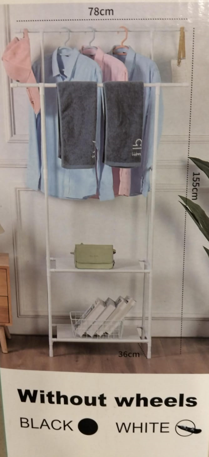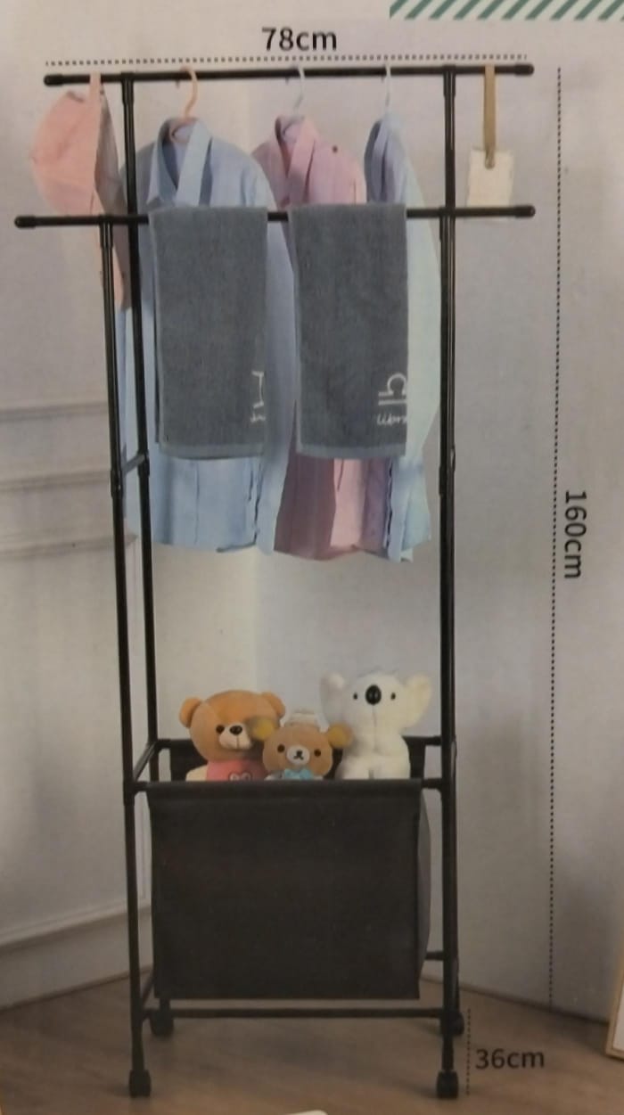 Clothes stand with wheels and storage basket