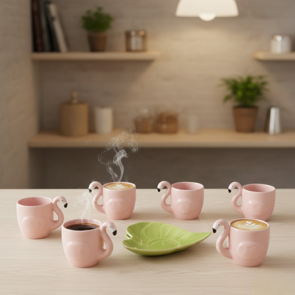 Coffee Set Flamingo Design , 12 Pieces, With plate - abdo-66-1 C