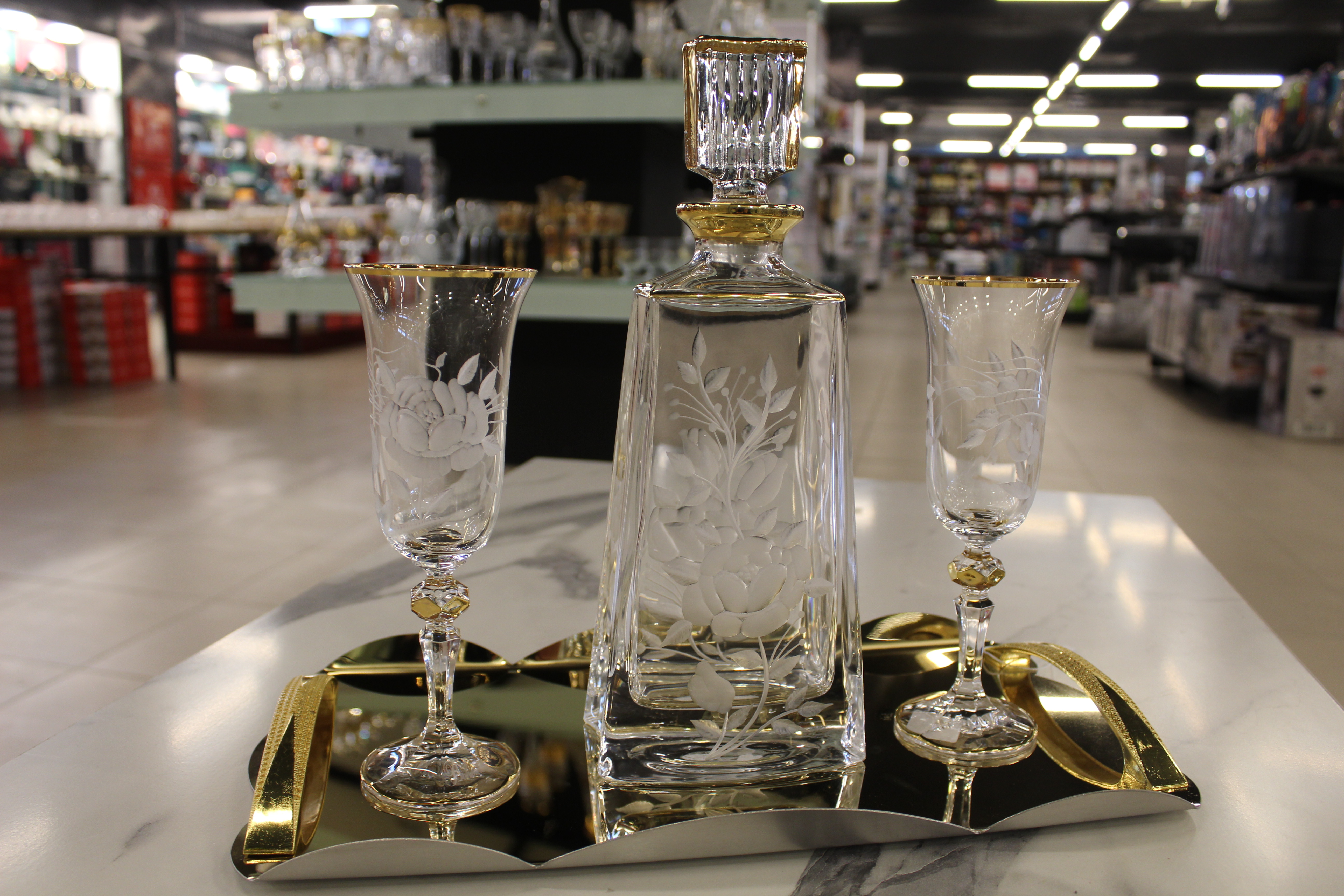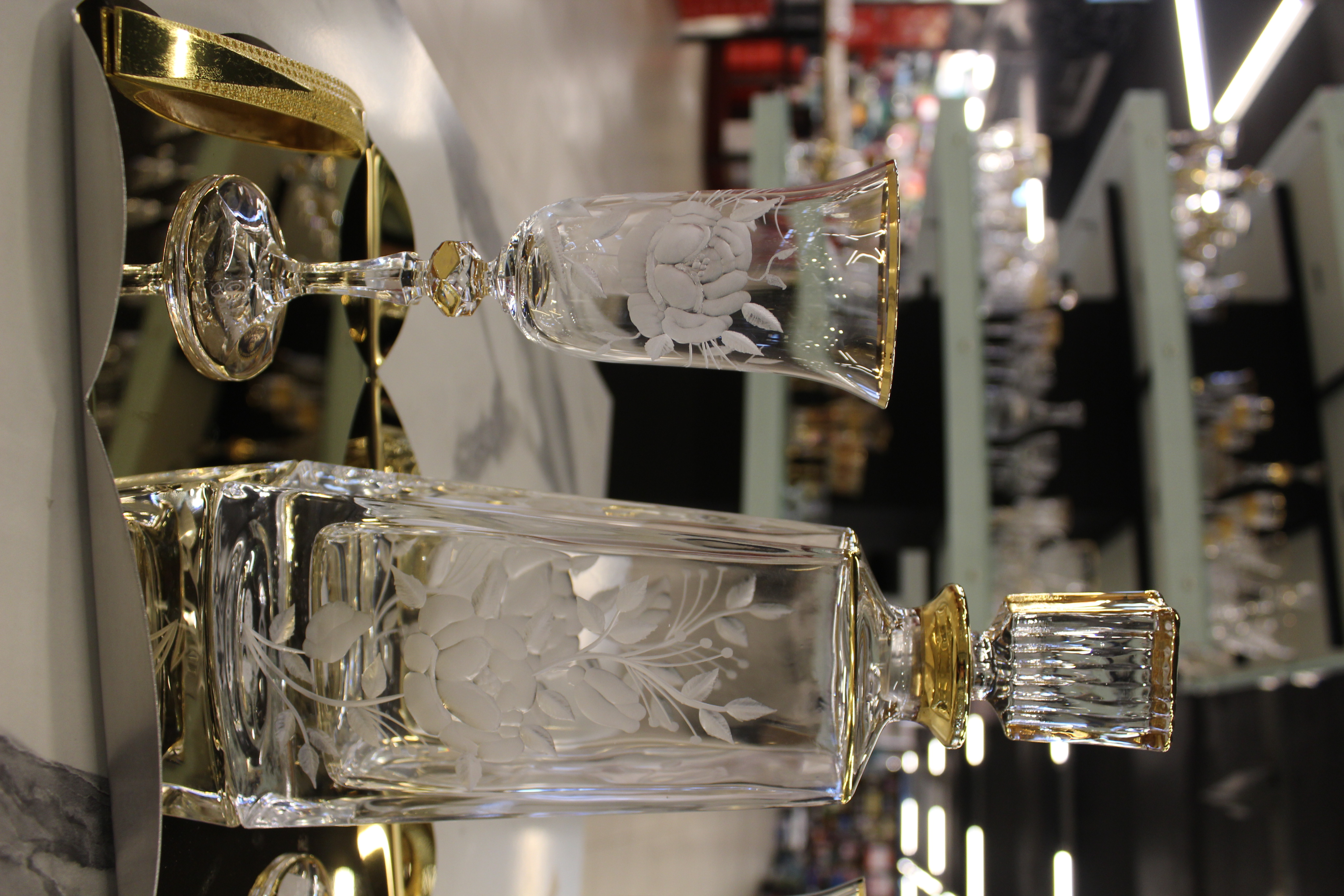 Crystal Sherbet Set Laura Engraved Decorative Flower Gold