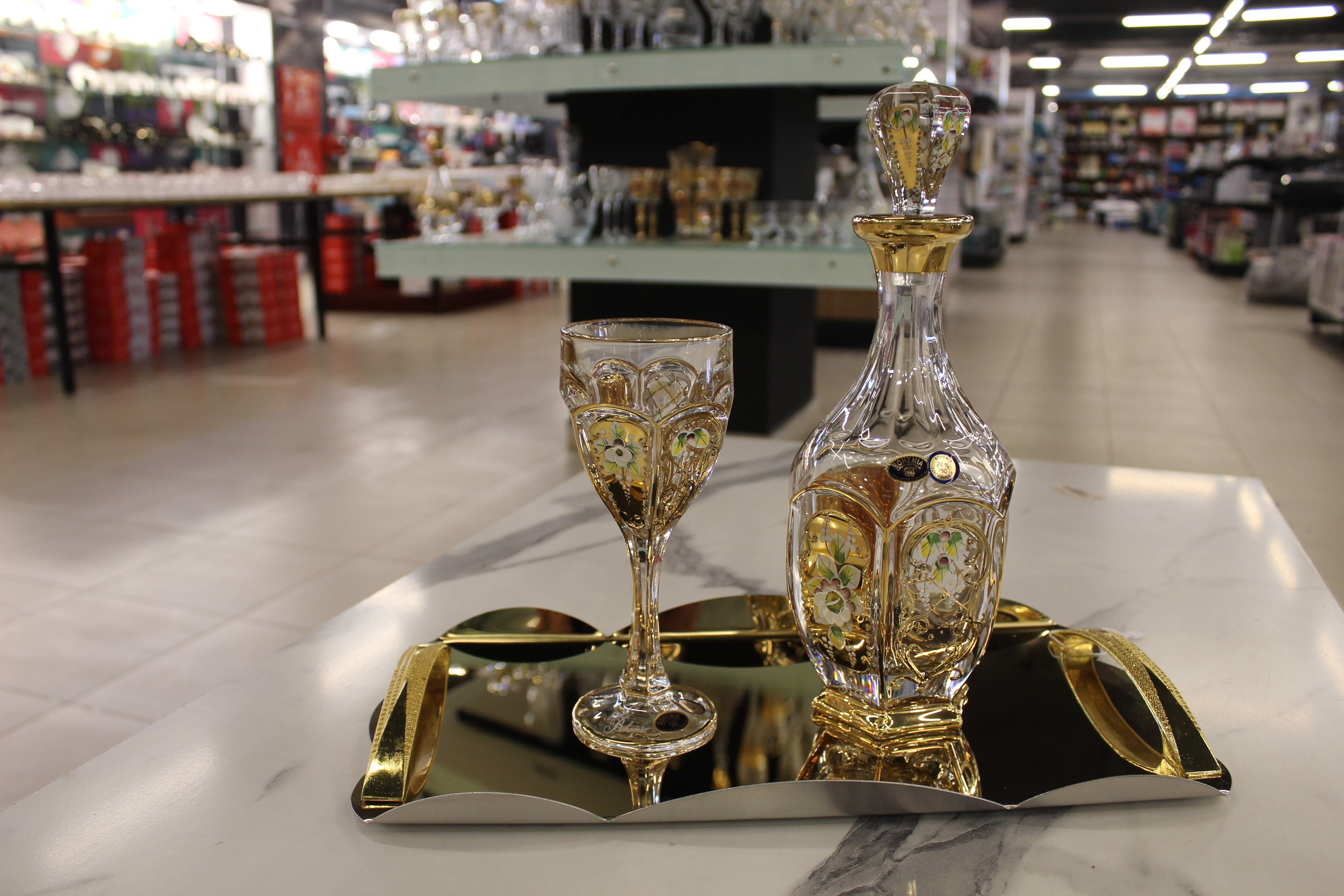 Crystal Sherbet Set Safari Bouquet of Raised Flowers