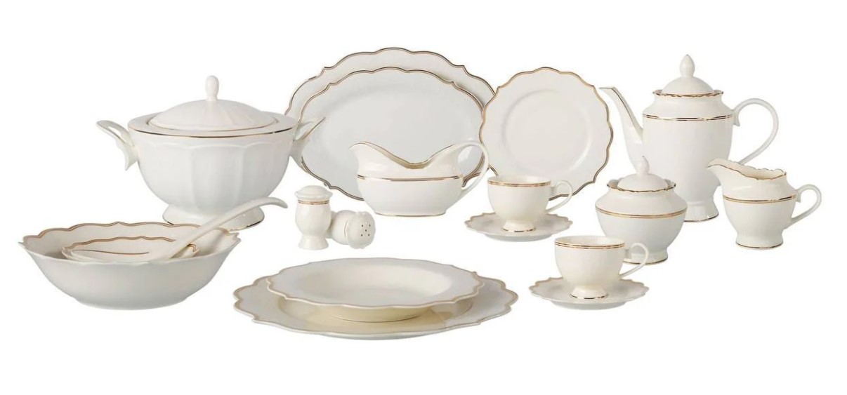 Dining set 126 pieces engraved with gold water draped design YM-02 round silver