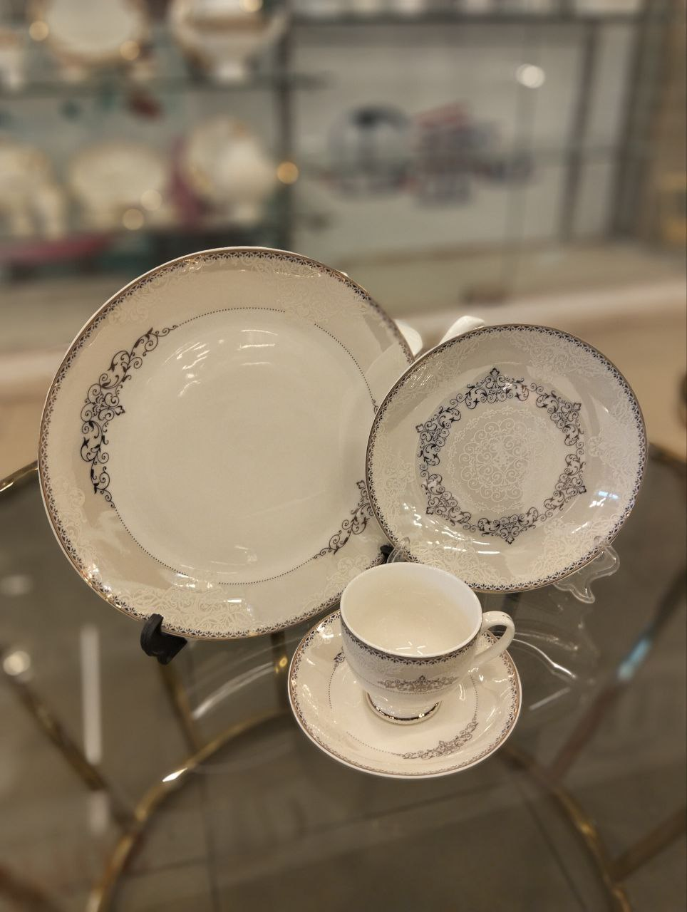 Dining set 66 pieces with delicate silver and simple gold artistic pattern code nr 2314