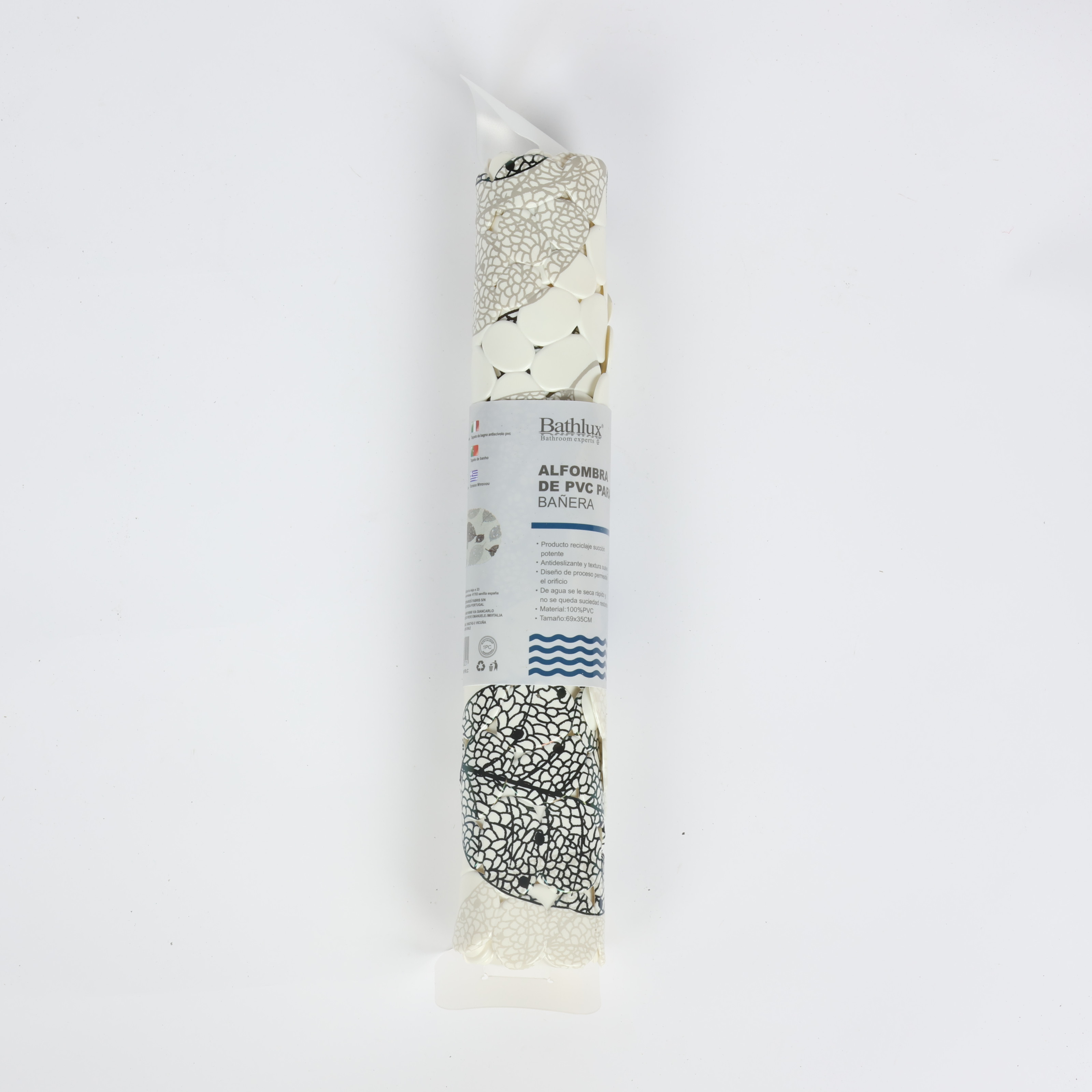 دواسة حمام بيضاوية باث لوكس، خامة نسيجية، أبيض منقوش بنمط هندسي، مقاسات 45 سم * 75 سم