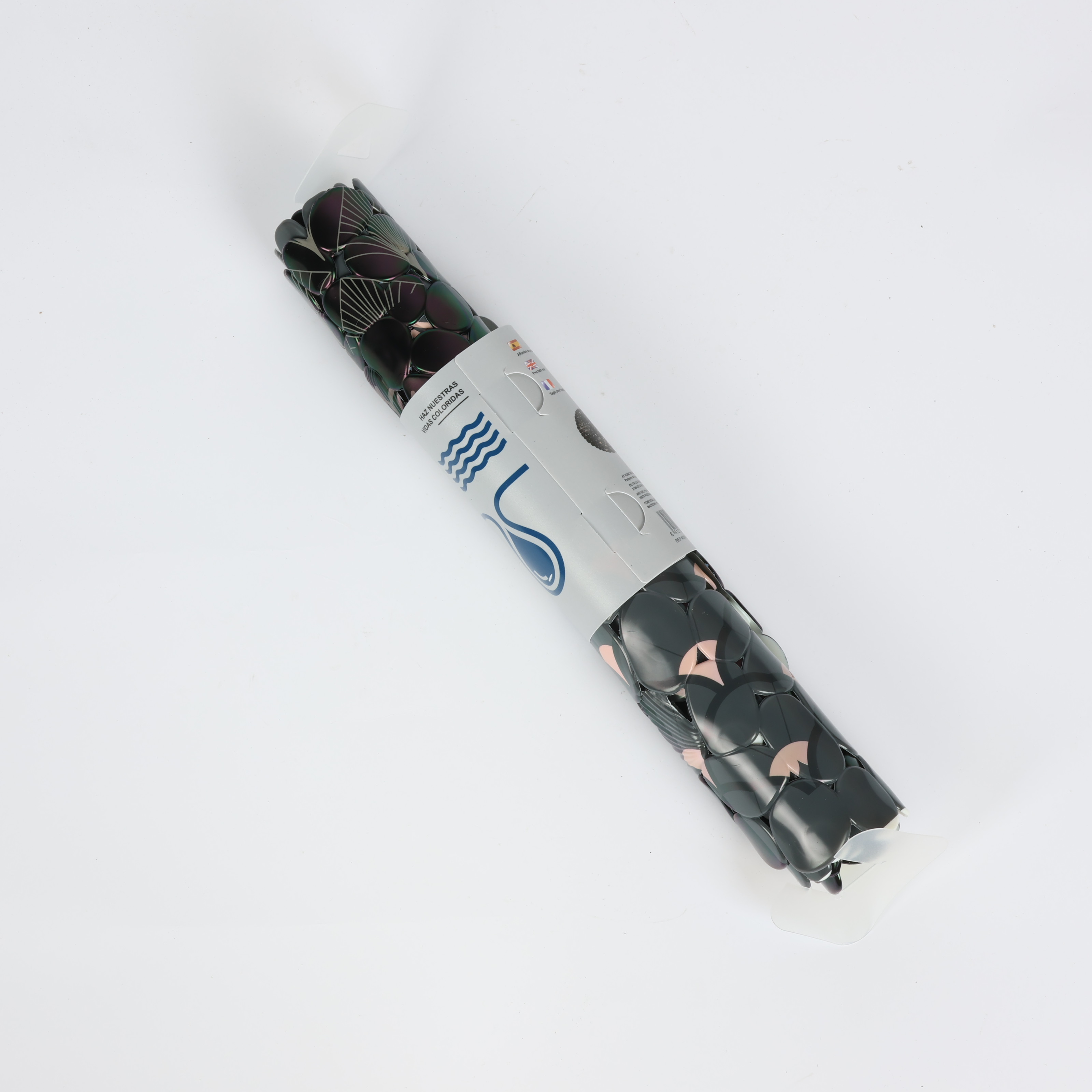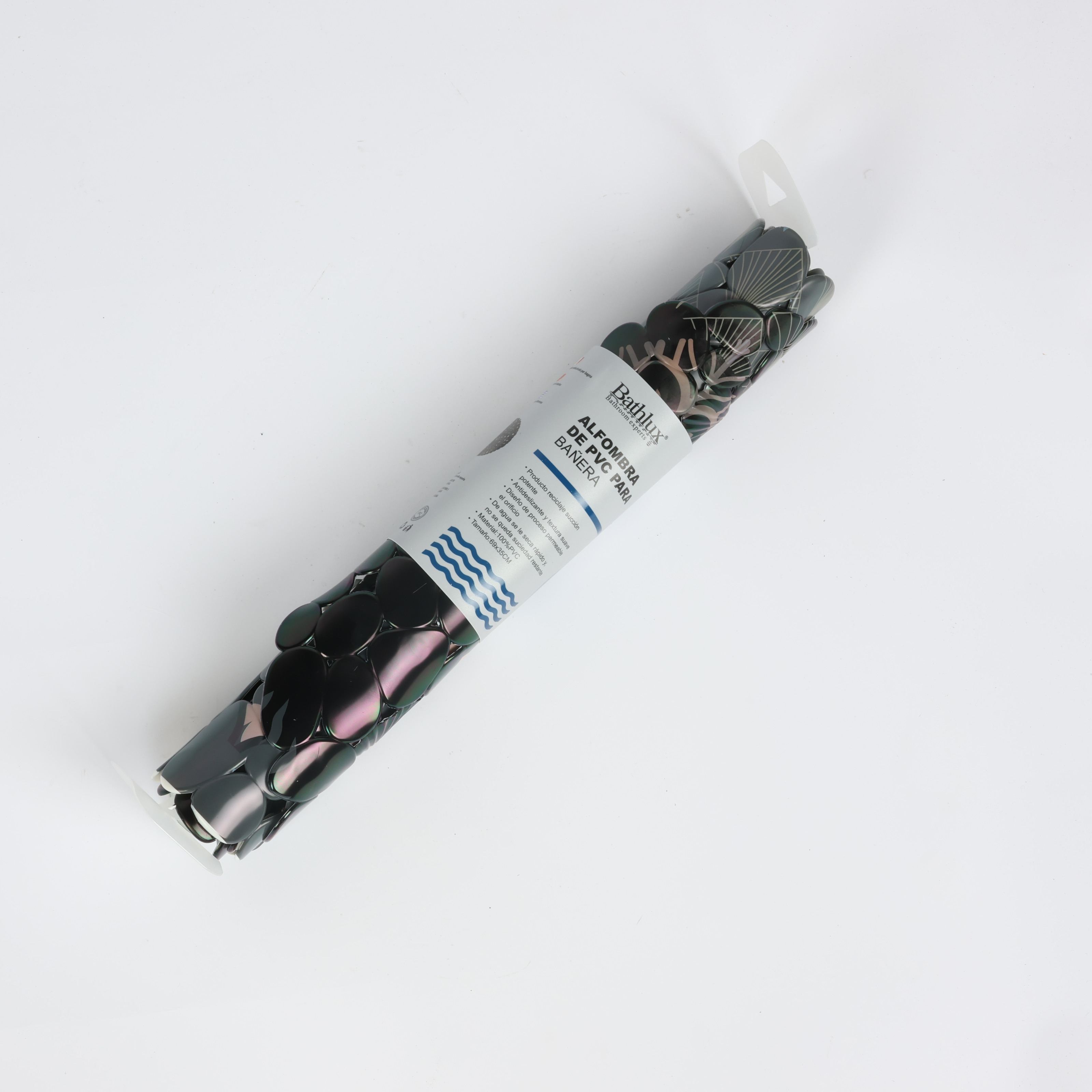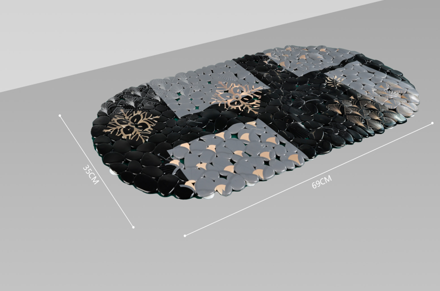 دواسة حمام بيضاوية باث لوكس، خامة نسيجية، أسود منقوش بنمط رسومات متناثرة، مقاسات 45 سم * 75 سم