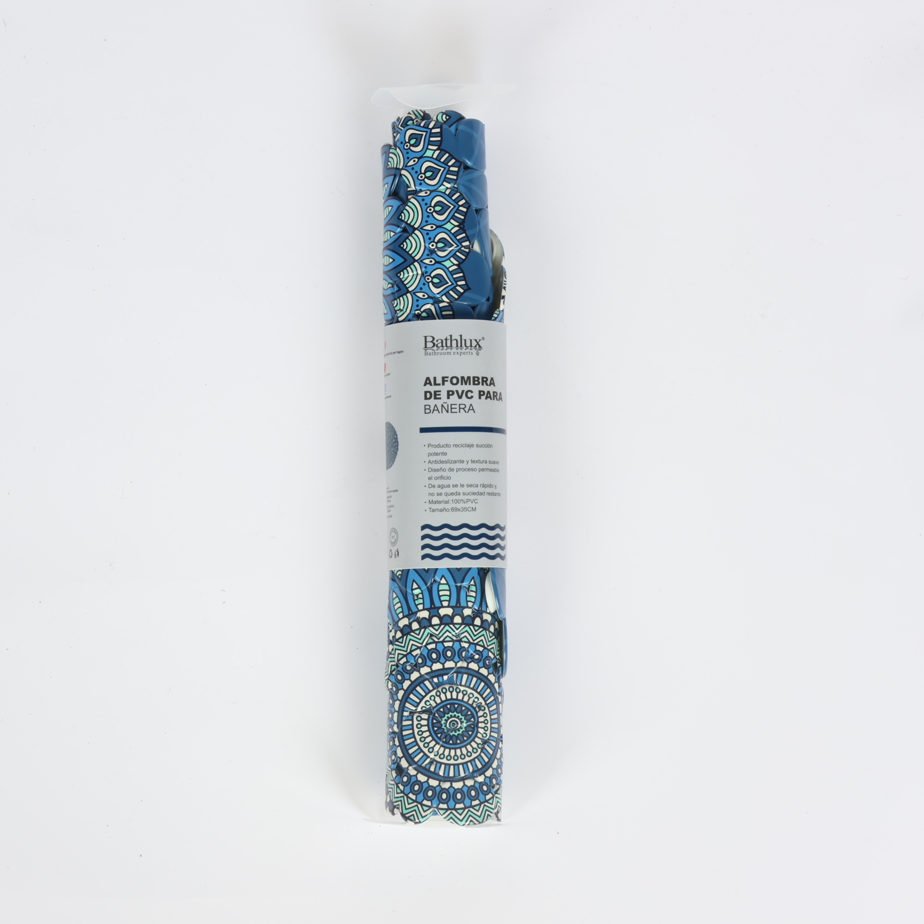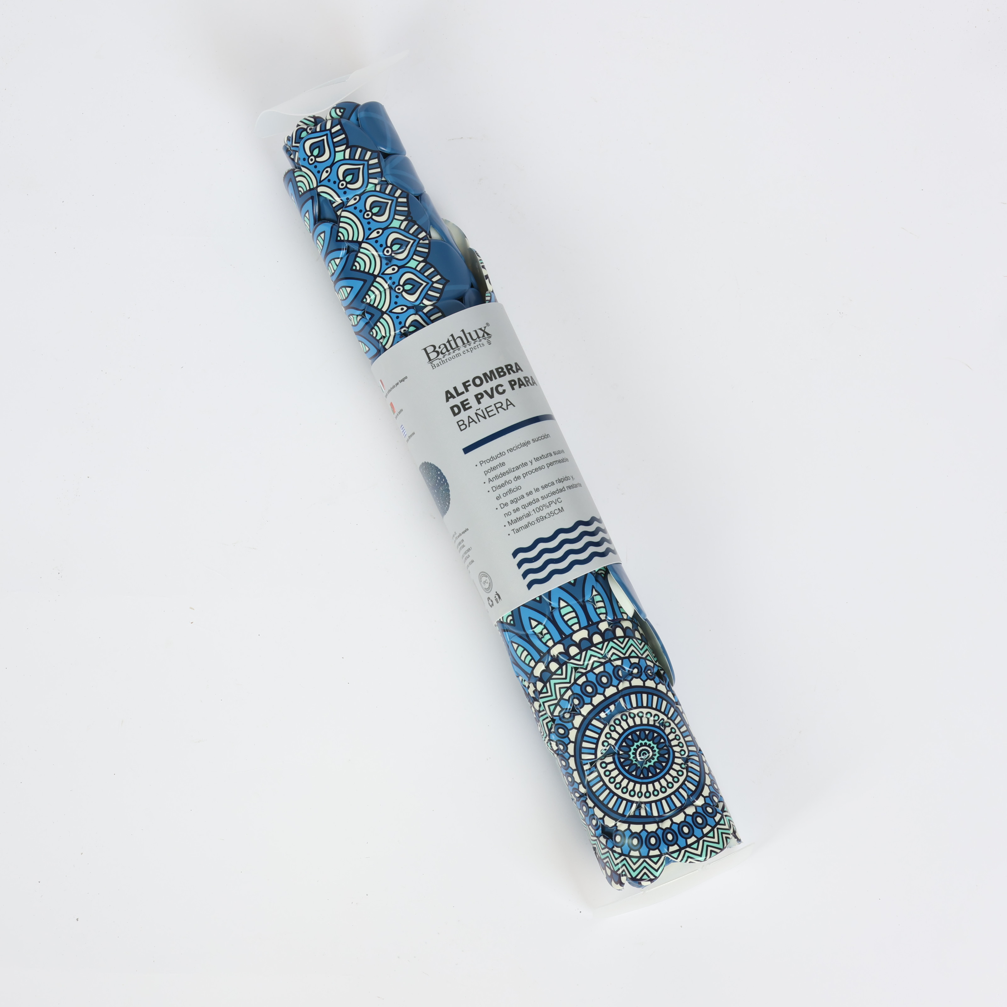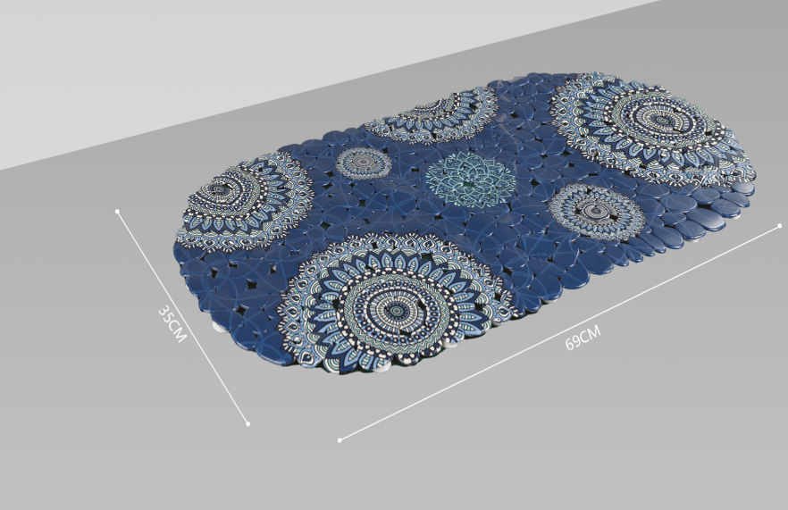 دواسة حمام بيضاوية باث لوكس، خامة نسيجية، أزرق كحلي بنمط ماندالا، مقاسات 45 سم * 75 سم
