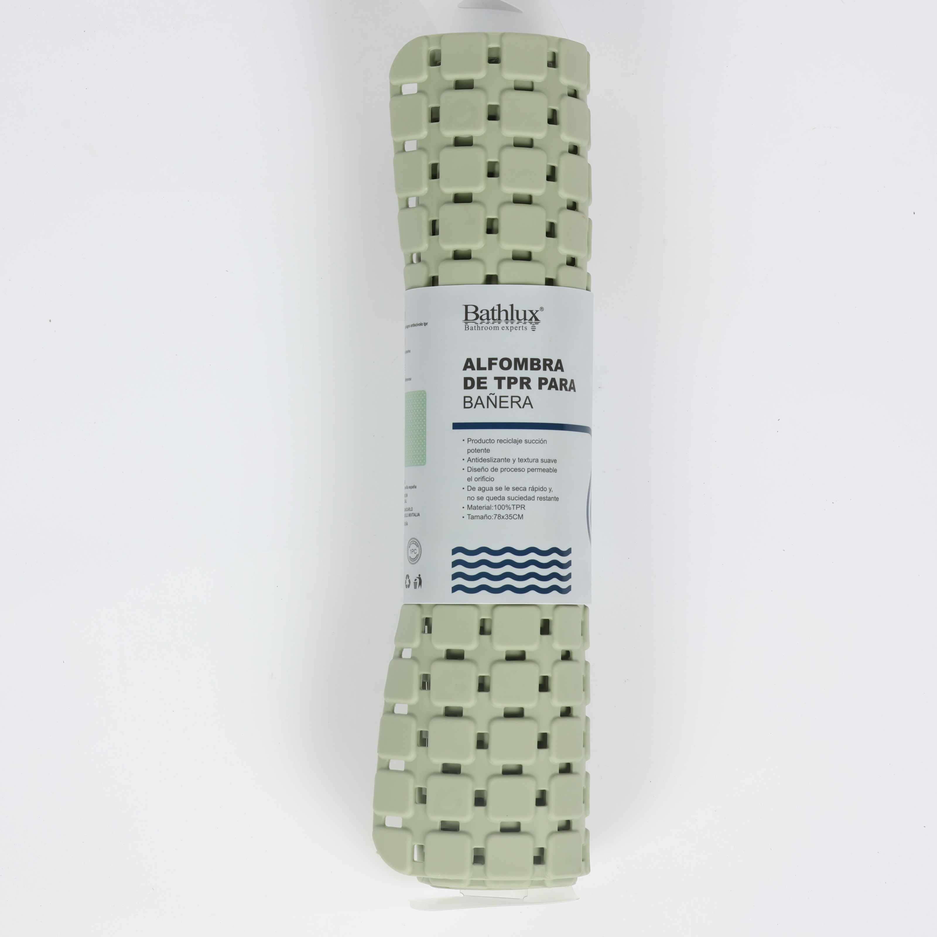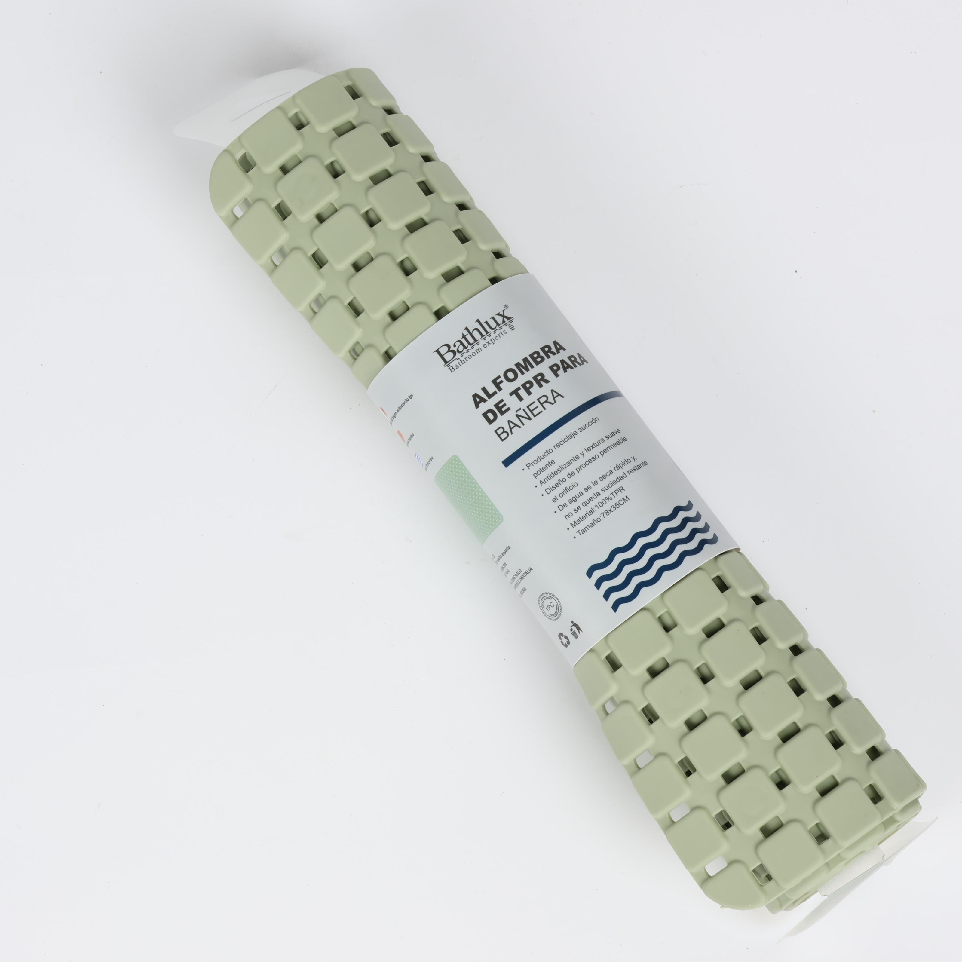 دواسة حمام مستطيلة باث لوكس، خامة مطاطية، رمادي فاتح بنمط مربعات، مقاسات 45 سم * 75 سم