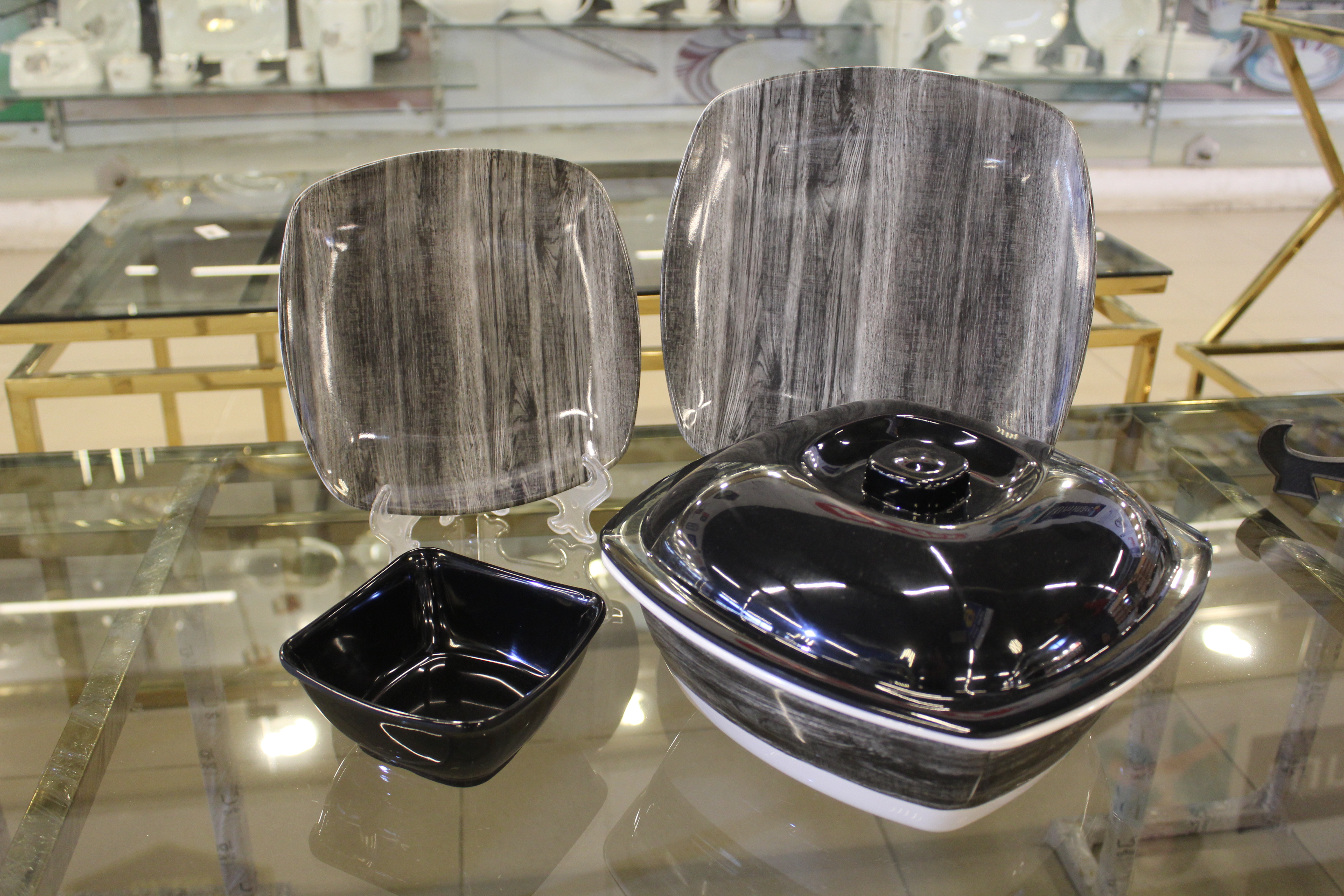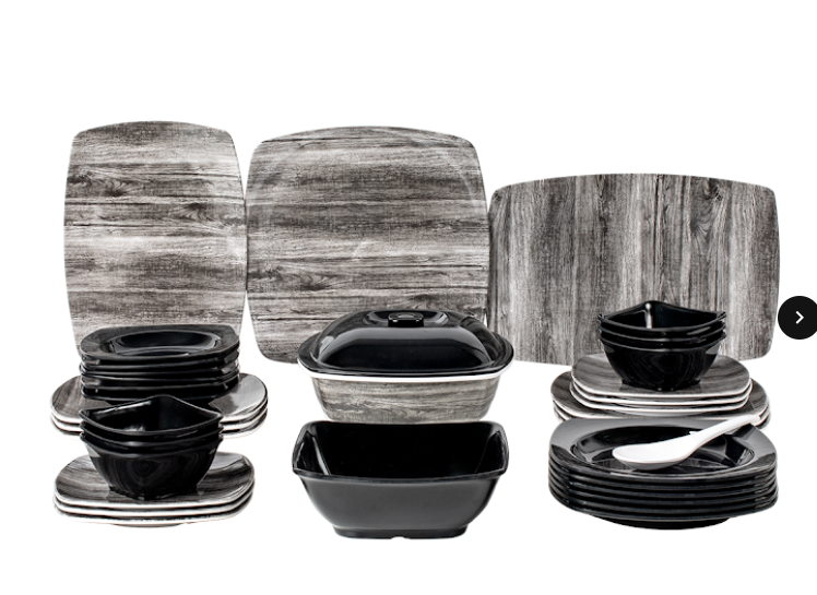 Dream Lotus 38-piece Melamine Set, Kazan Square, Black