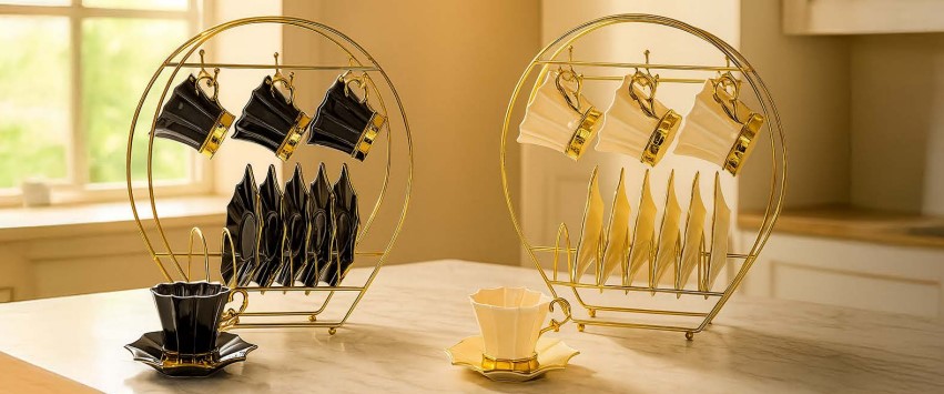 Dream Lotus Coffee Cup Set 12 pcs – Dream Lotus on Crown Colors Gold Stand 3037
