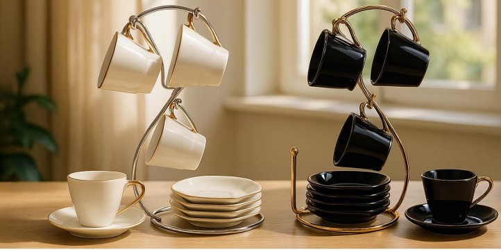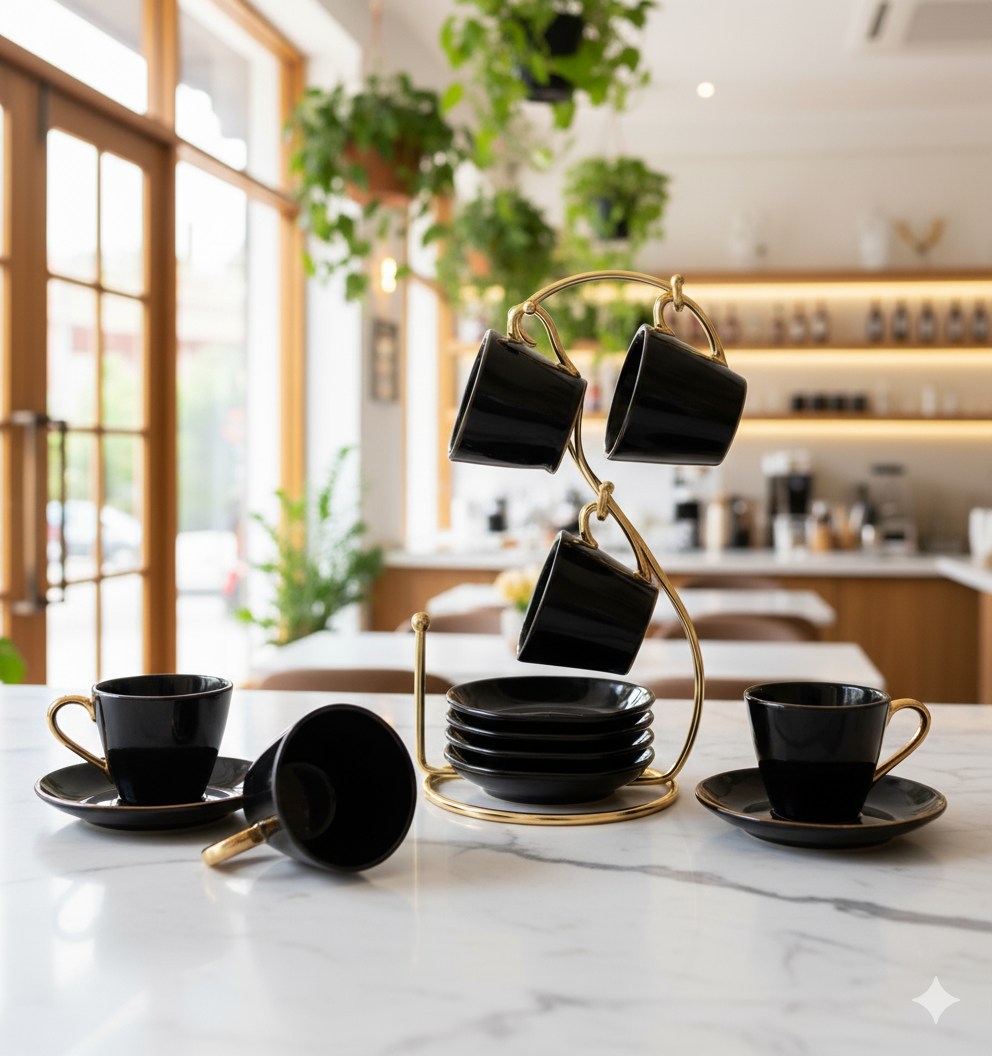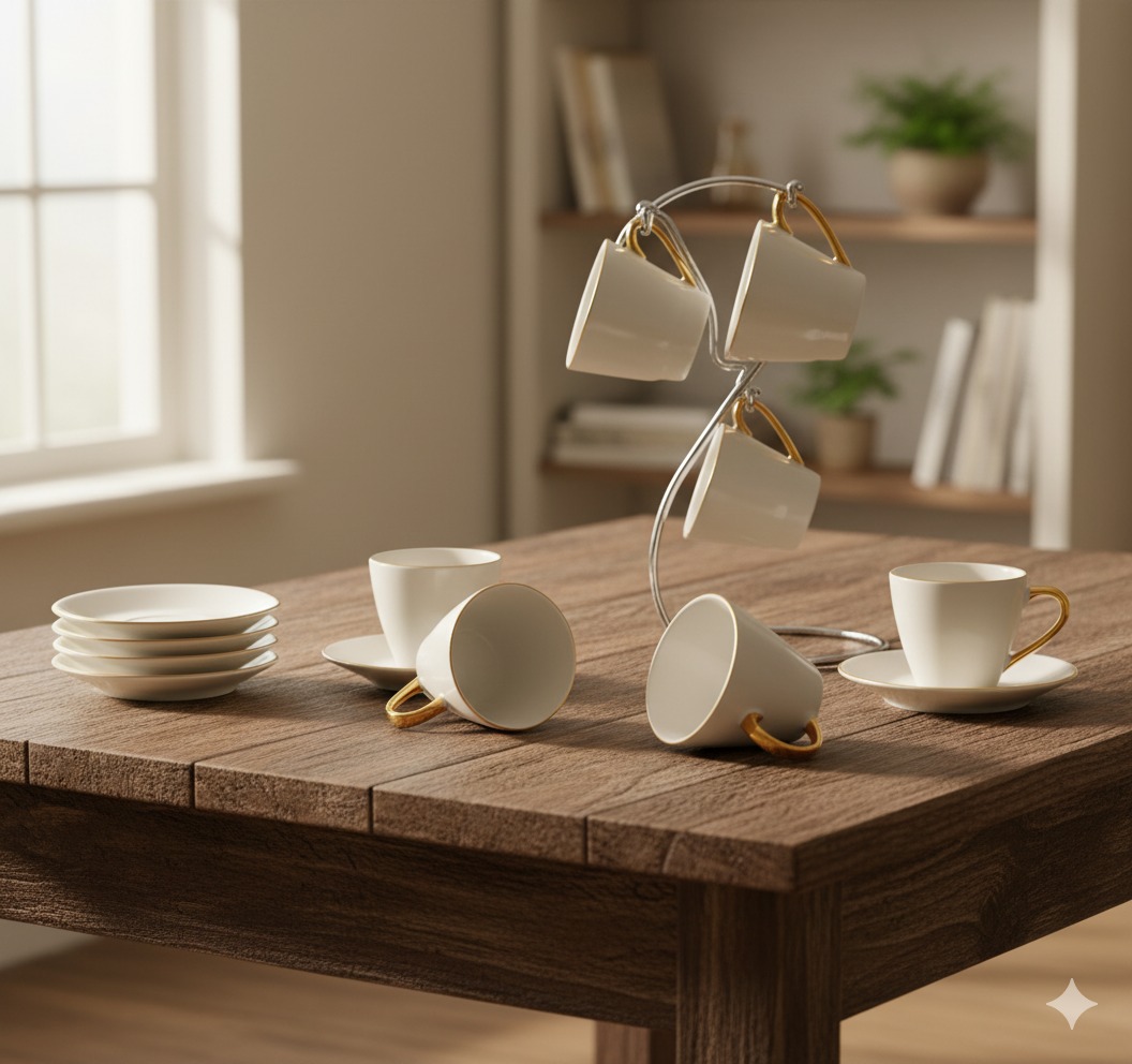 Dream Lotus Coffee Cup Set 12 pcs – Dream Lotus on Wavy Gold Stand (Square) 3003