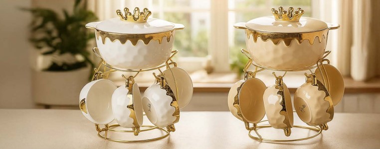 Dream Lotus Soup Mug Set with Bowl 5 pcs – Mint Gold 2046