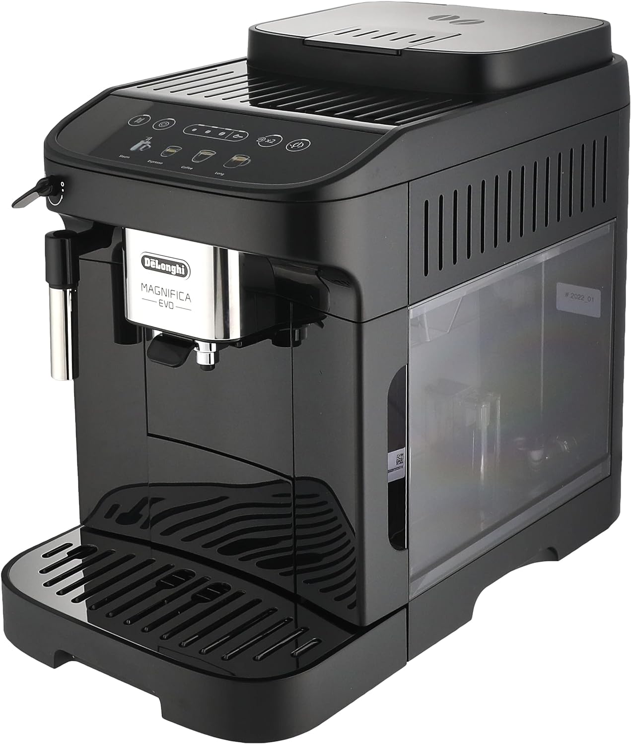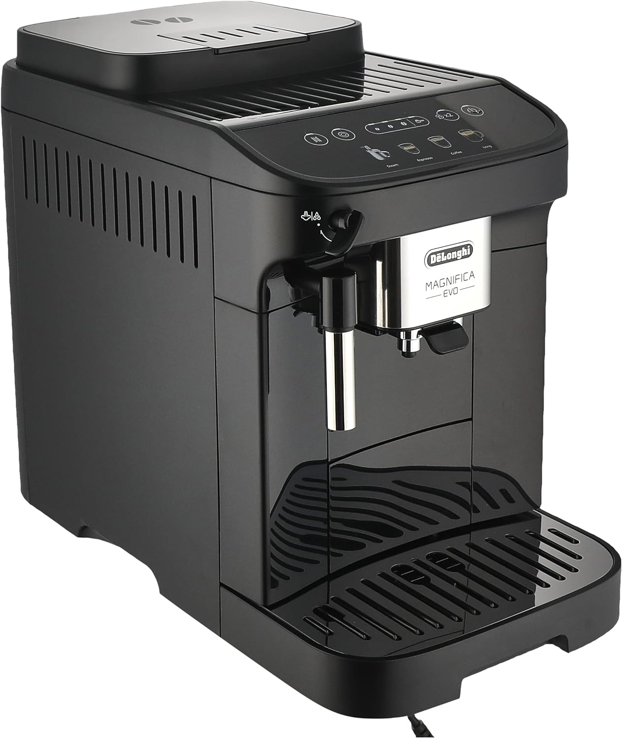 Enjoy the ultimate coffee experience from the comfort of your own home with the De'Longhi Magnifica Evo. Brew the perfect espresso from freshly ground beans, one of 4 recipes available with a single touch. Features an intuitive soft touch display with colour icons for each recipe. Its stylish black finish is the perfect addition to any modern kitchen.