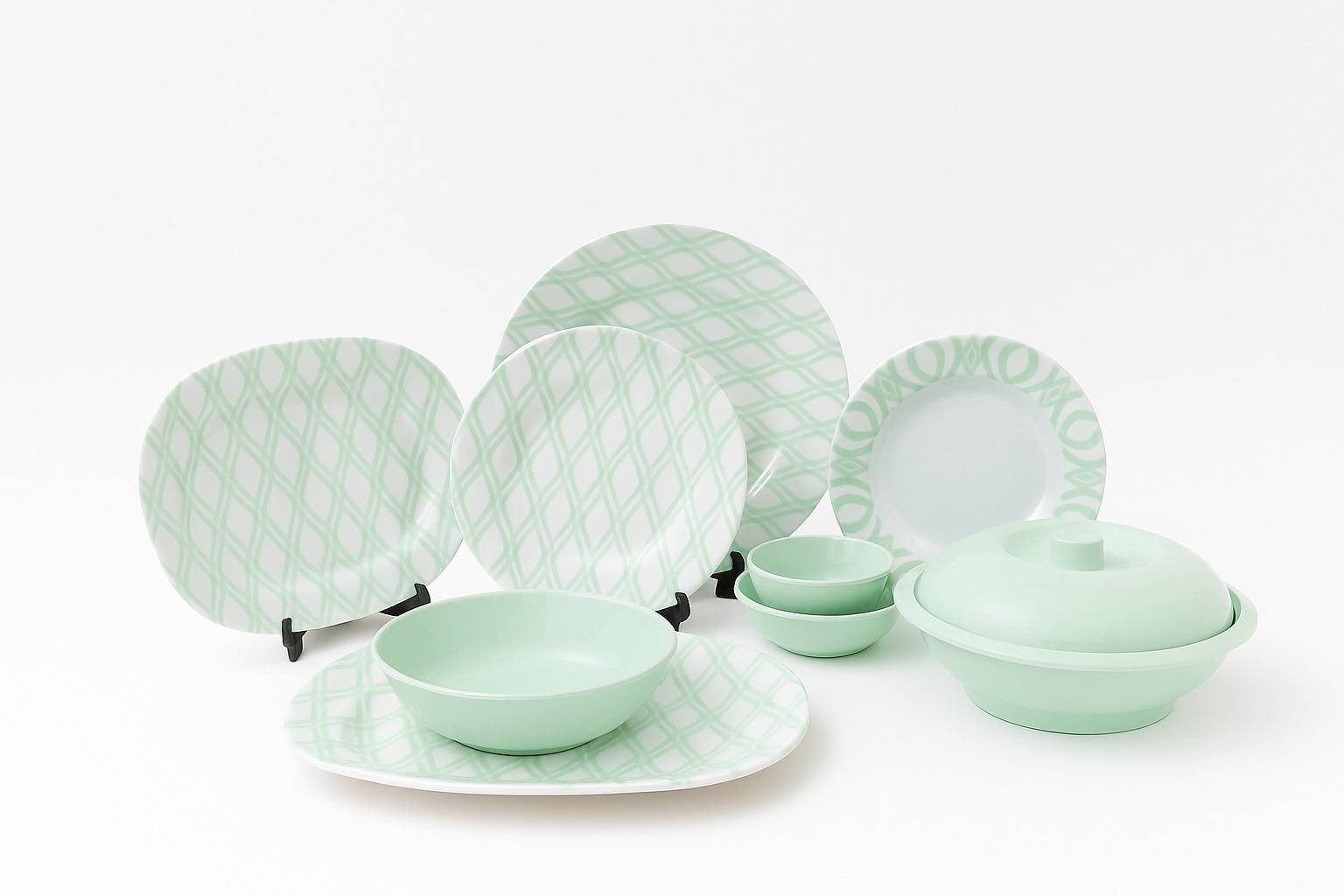 El Sherif Melamine Set, 38 Pieces, Round, Green - 6221189794779
