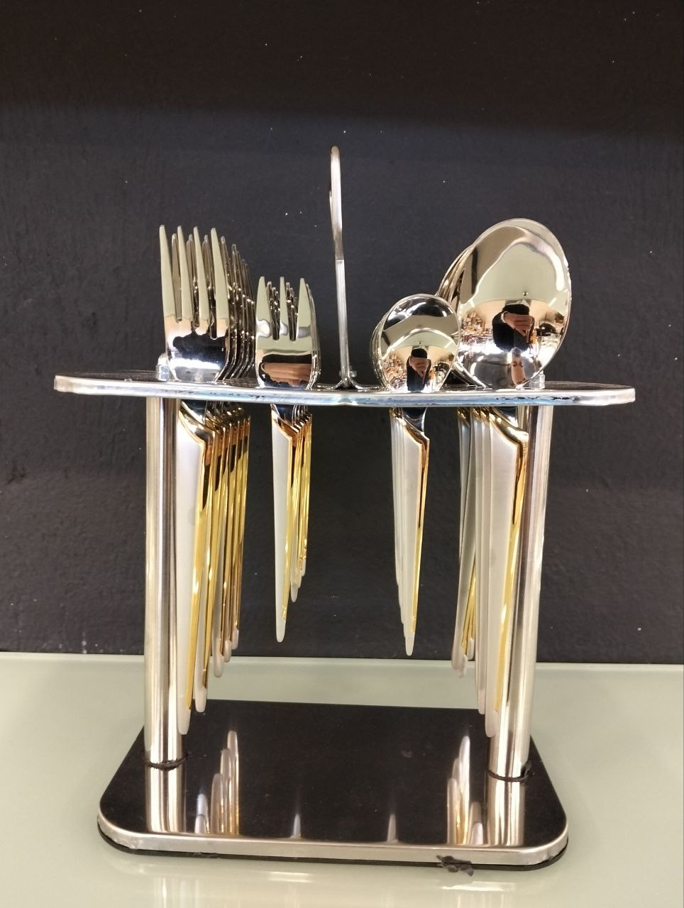 ELBaraka Set of 24 Pieces Spoons and Forks with Silver Holder 104687