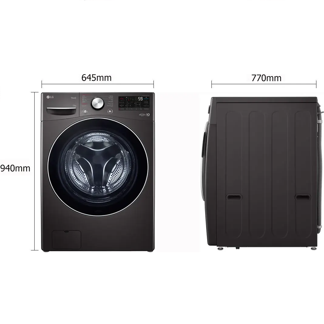 LG washing machine, front-load 15 kg. black steel ,AI DD™ technology - F0L9DYP2E