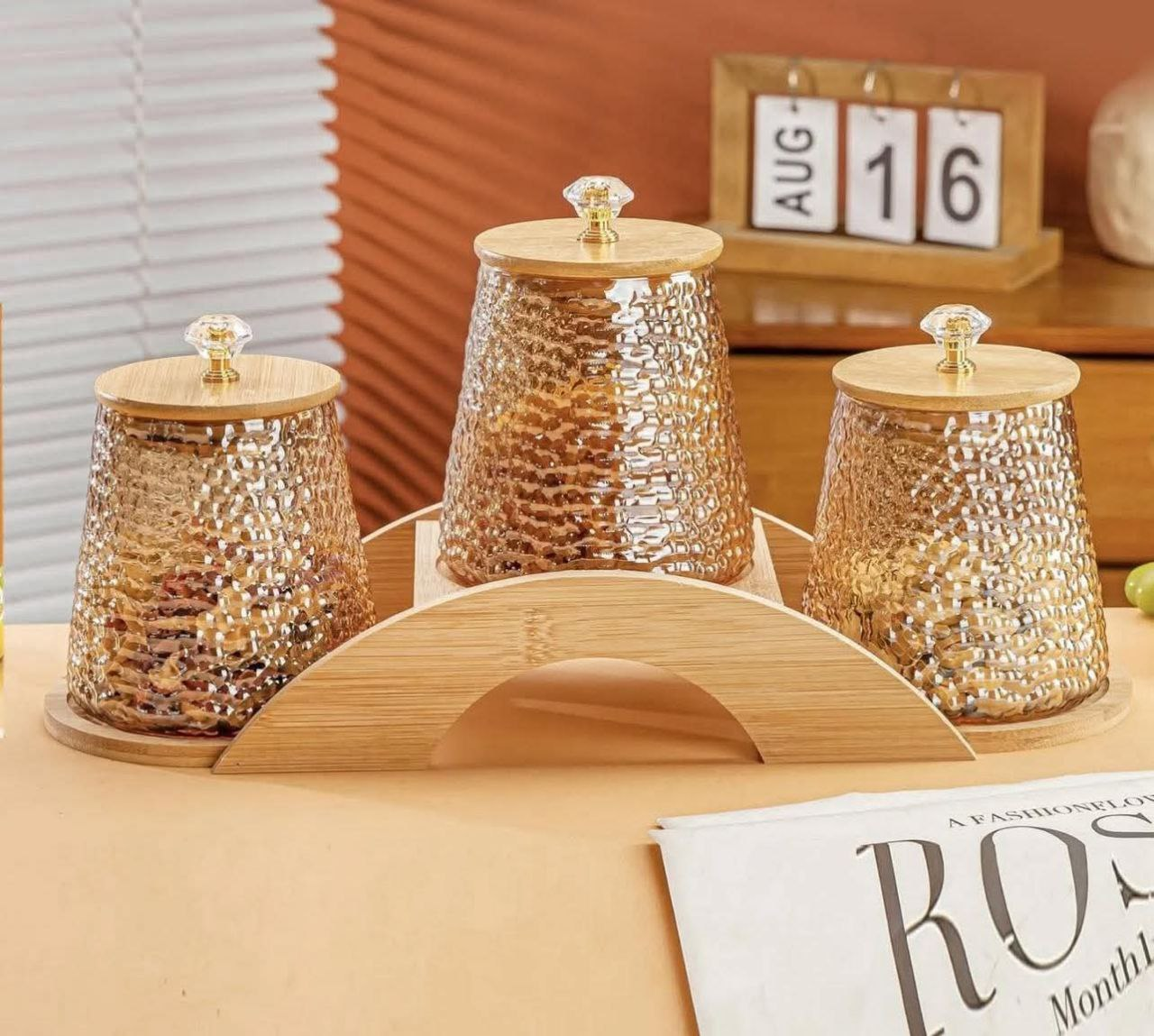 Facet Spice Set 3 Pieces Glass on Wooden Stand EE-35 V2