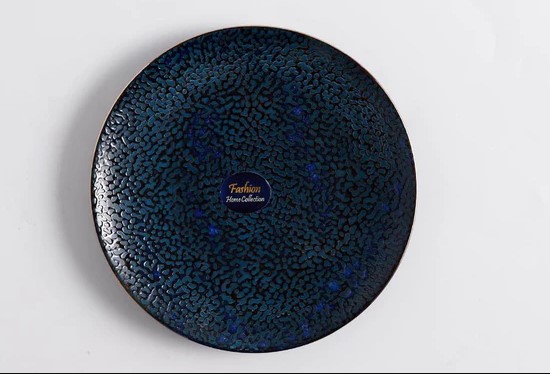Individual flat porcelain plate Danny Home with embossed steam shape in navy and gilded edge Dimensions 22 × 22 × 2.3 cm 85P 2027
