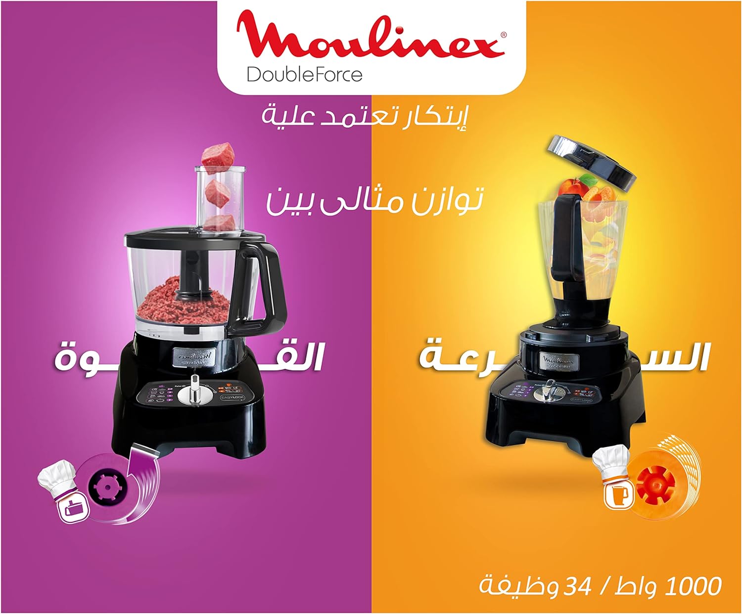 MOULINEX Food Processor 1000W 34 Functions Double Force, Black - FP824825-1