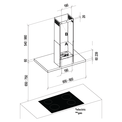 Fresh Cooker Hood, 90 cm, with Chimney, Black Glass - FHE90D7, 750M/3