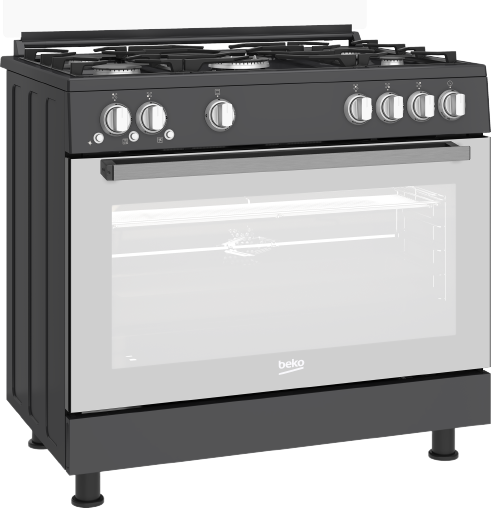 GGR 15115 DX NA-Beko Gas Cooker, 90 cm, Full Safety, Black Cast Iron