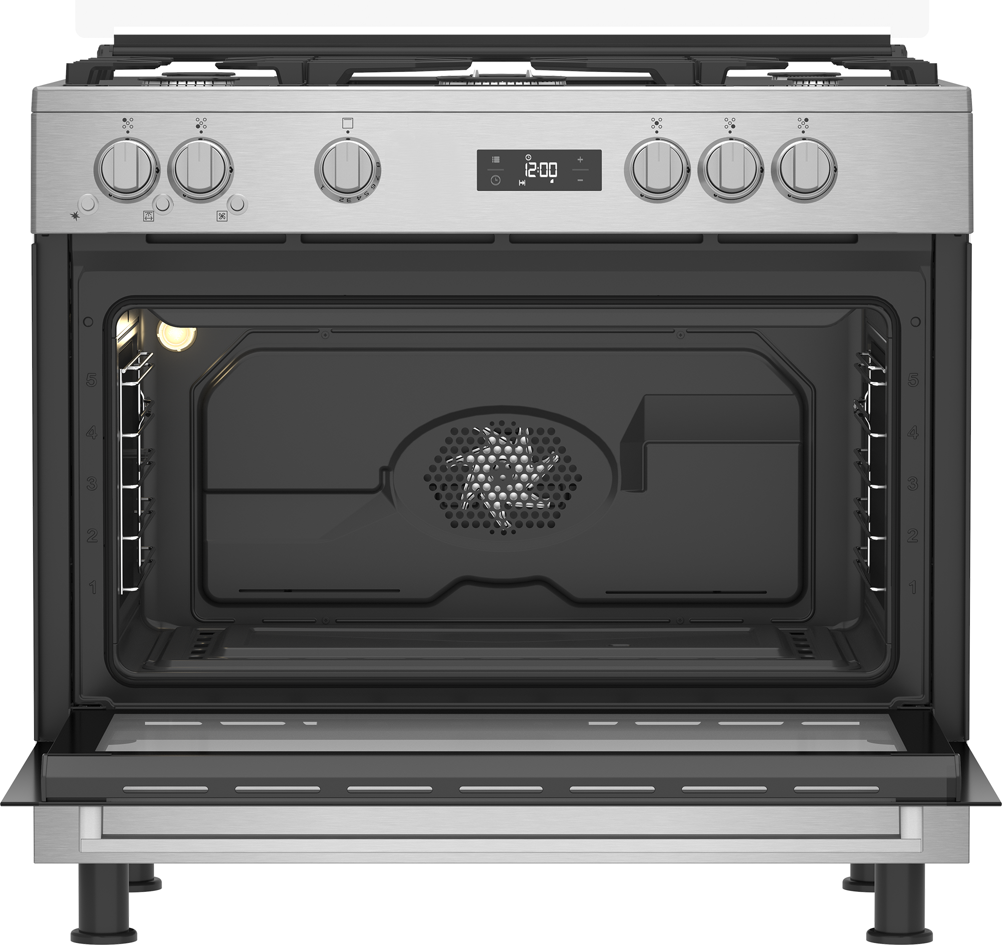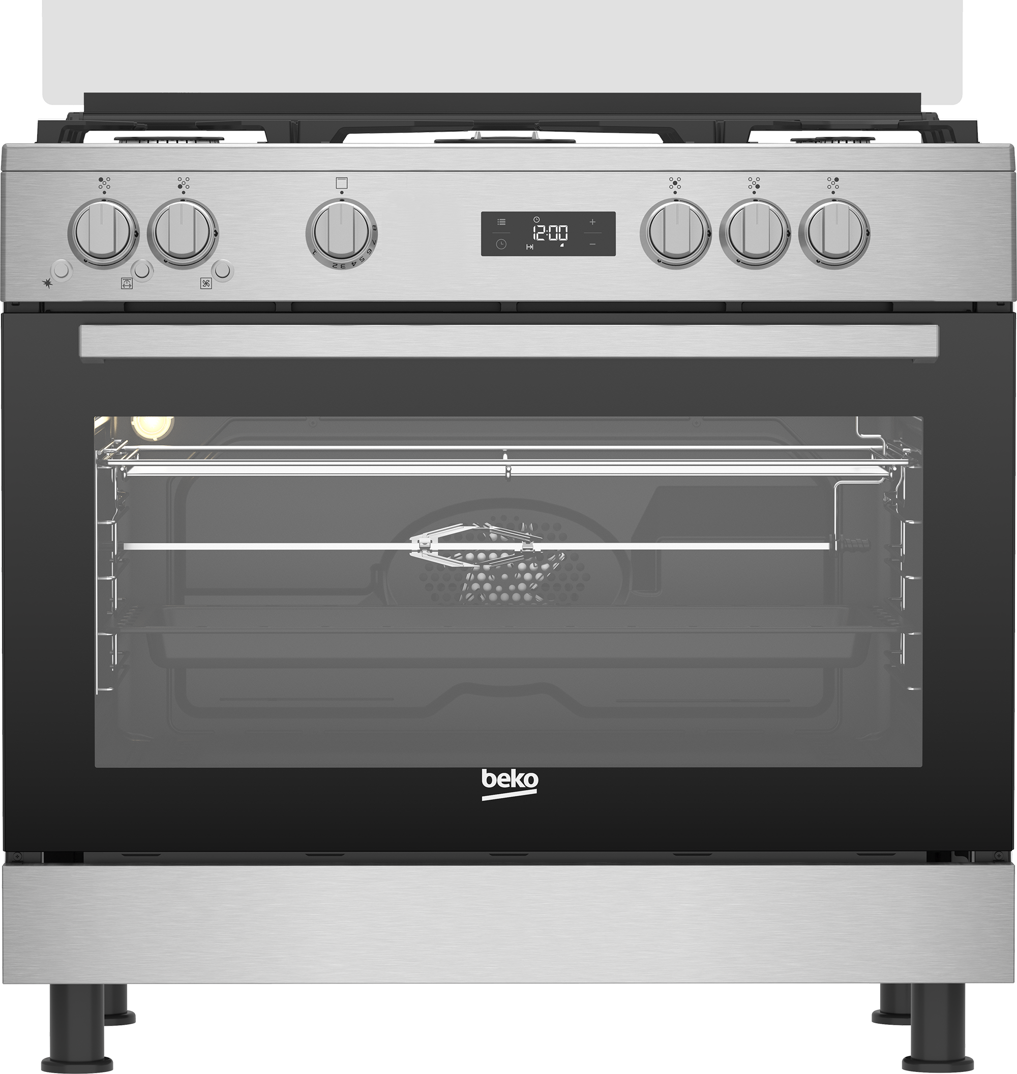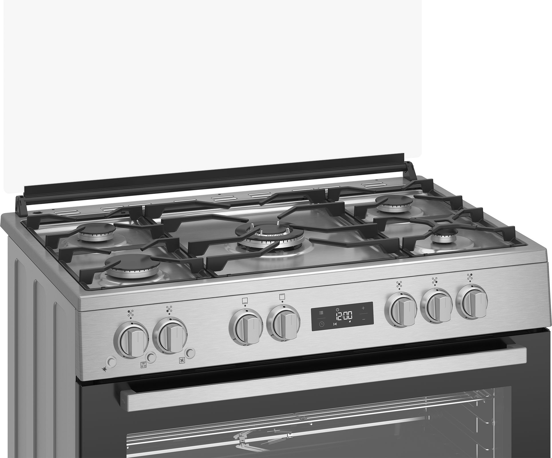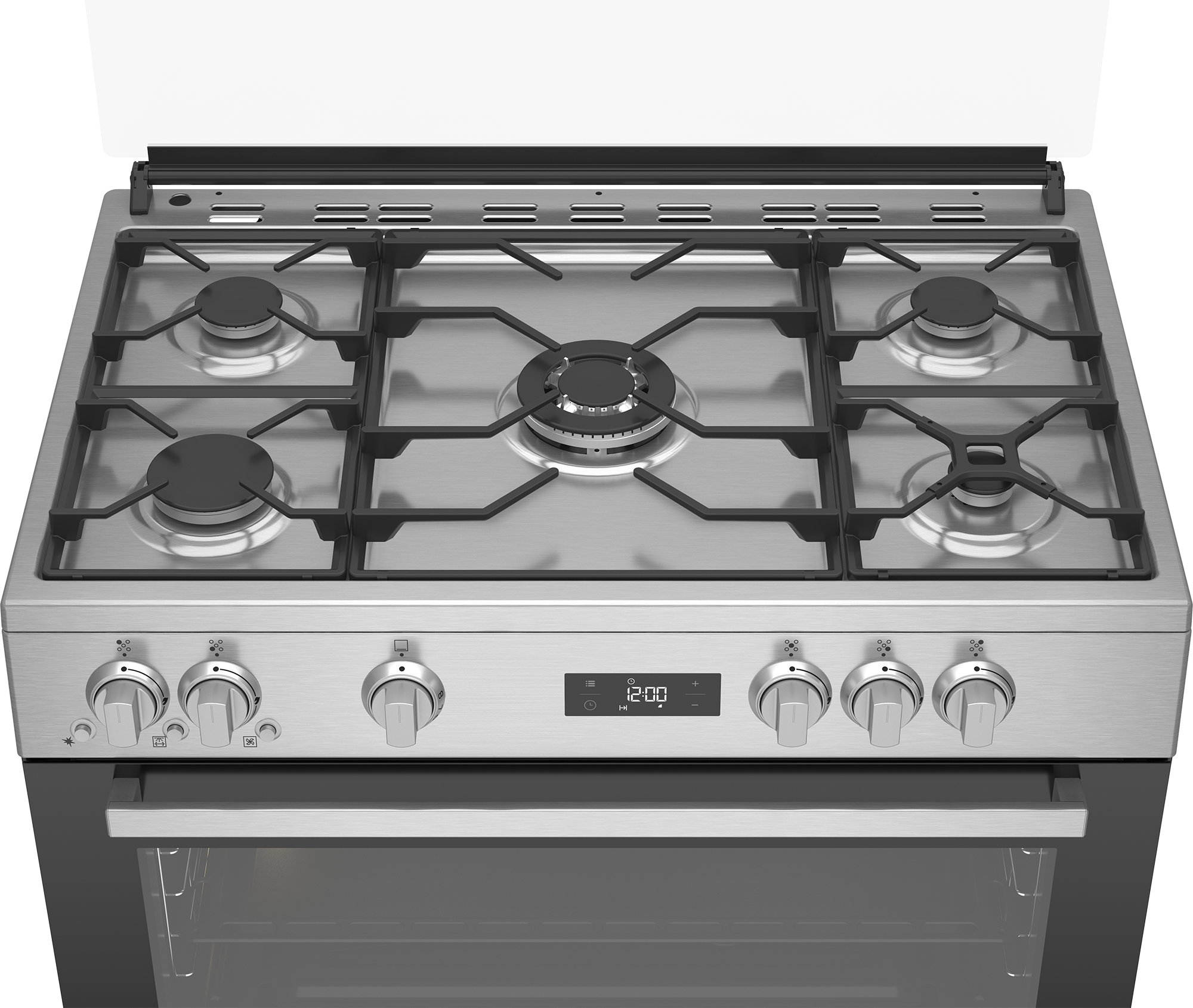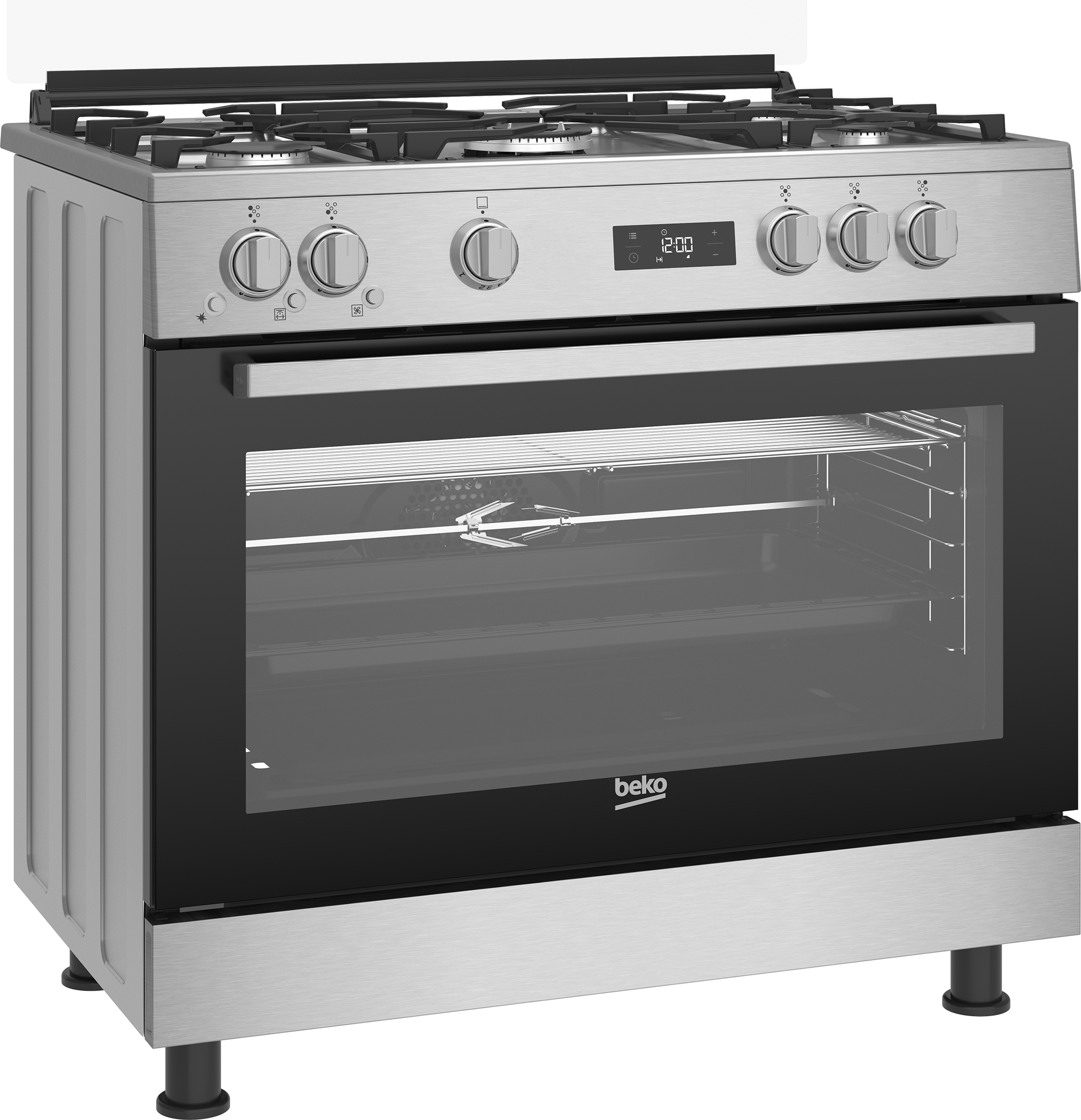 GGR 15325 FX NS - Beko bPRO 500 Gas Cooker, 5 Burners, Stainless Steel and Black