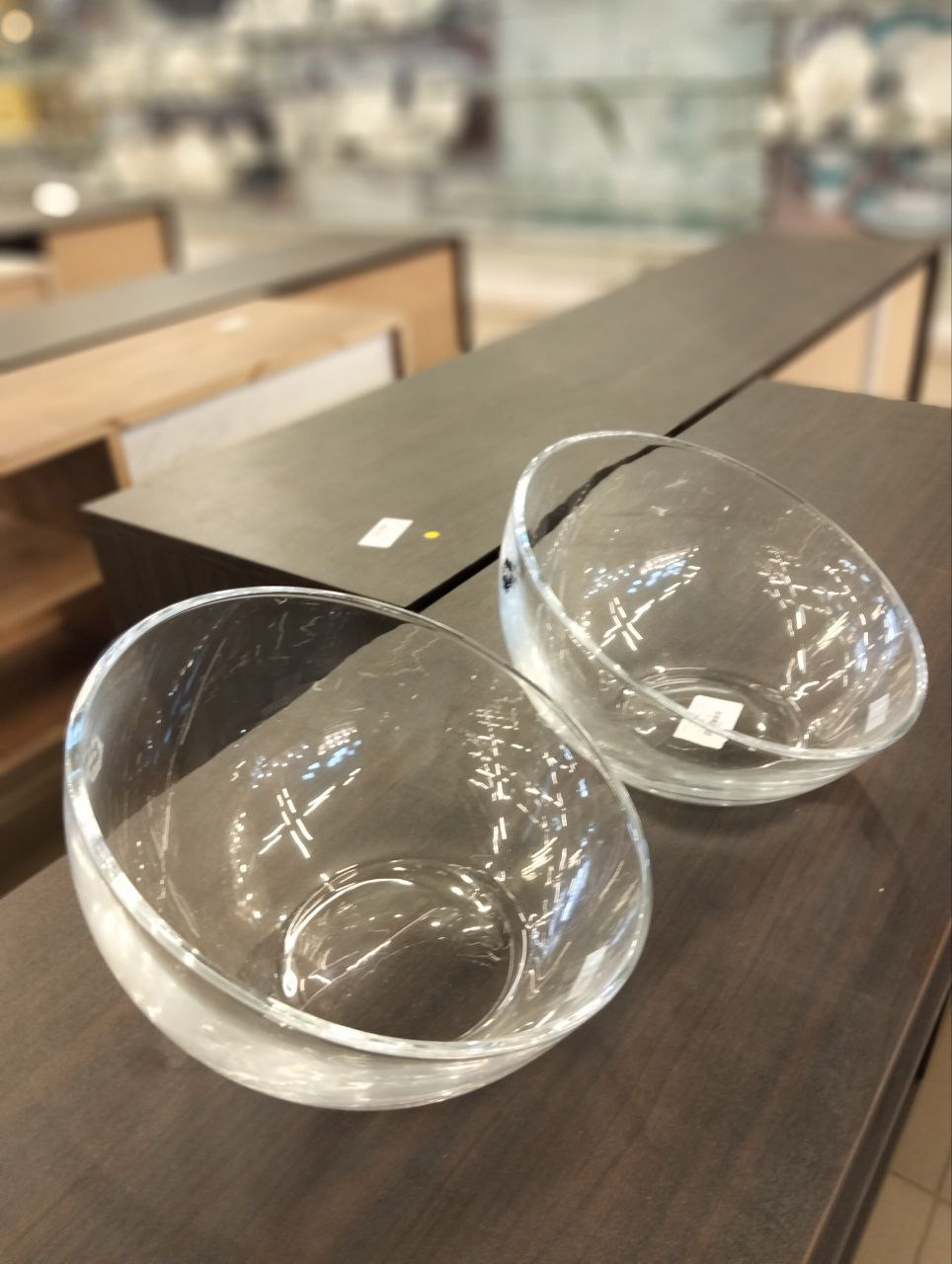 Living Home glass bowl, set of 2 pieces, with an innovative geometric design and a slanted rim that reflects modernity and simple elegance