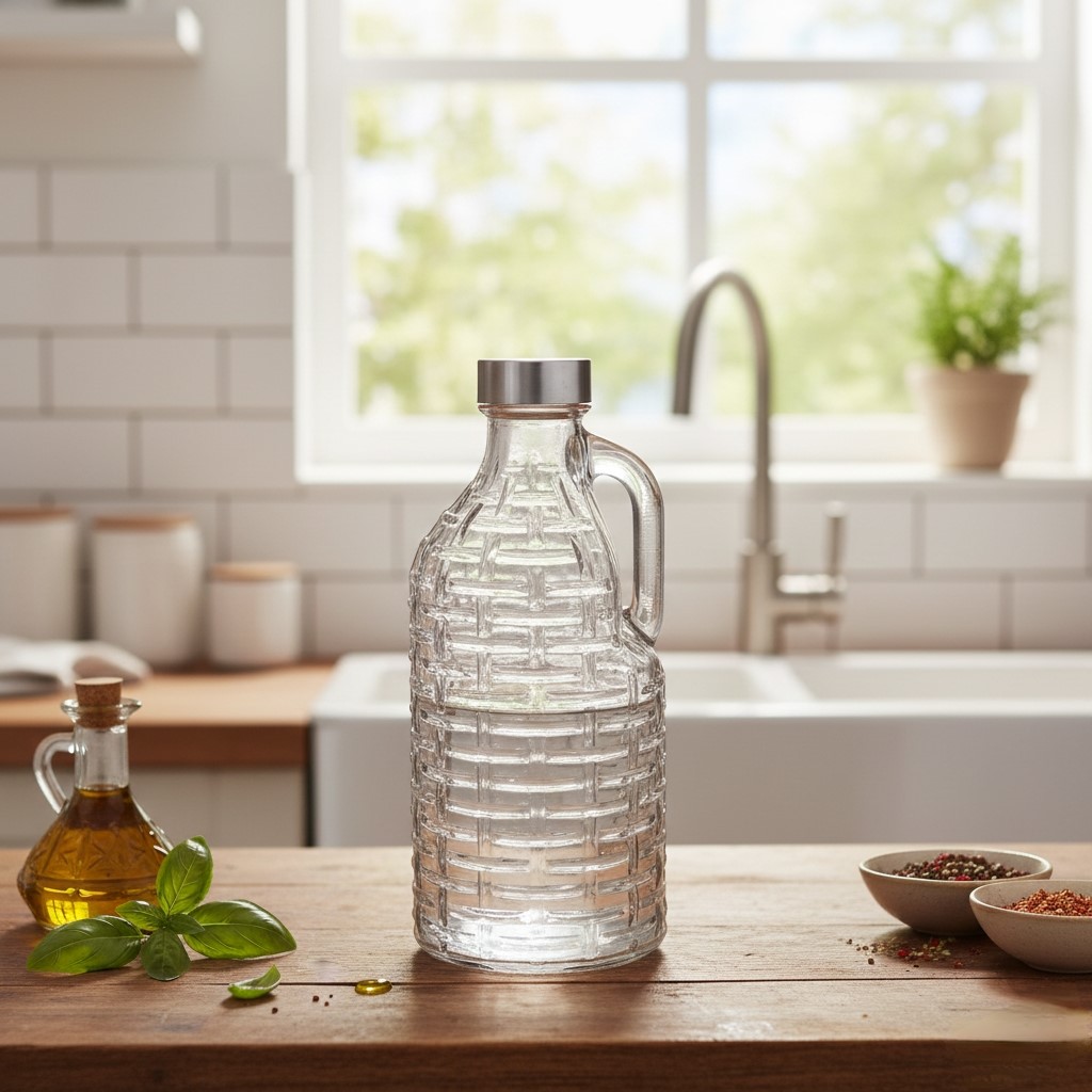 Glass Water Bottle, Burgundy Square Pattern Round Shape With Handle and Silver Lid - abdo-201-222