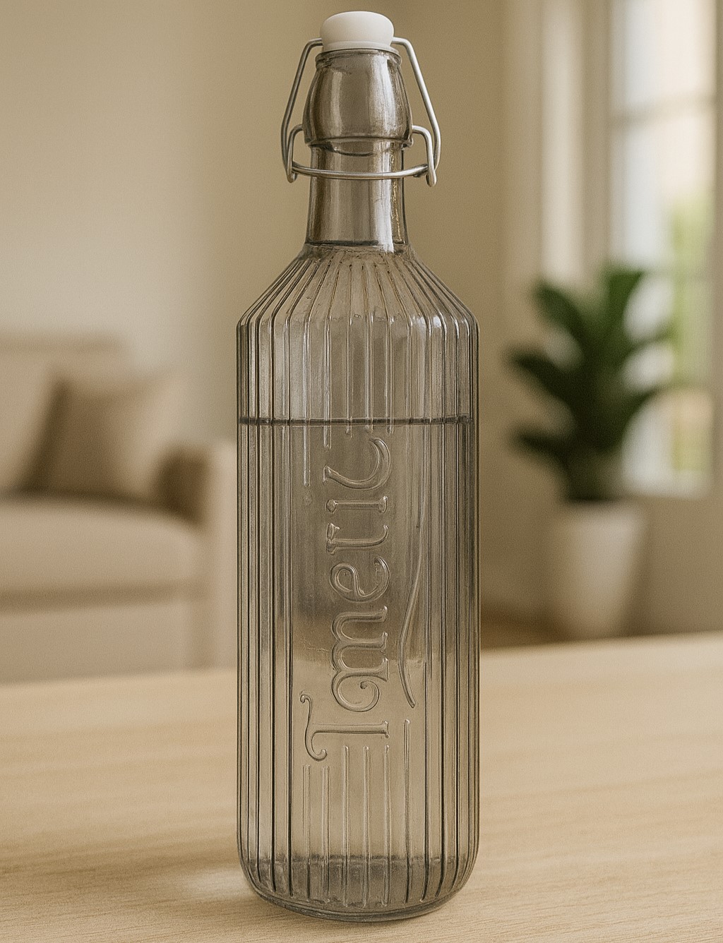 Glass Water Bottle Fumé Round Ribbed with Clip Lid - abdo-109-15 D