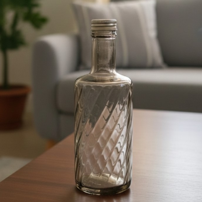 Glass Water Bottle Fumé Spiral-Shaped with Clip Lid - abdo-109-8 D